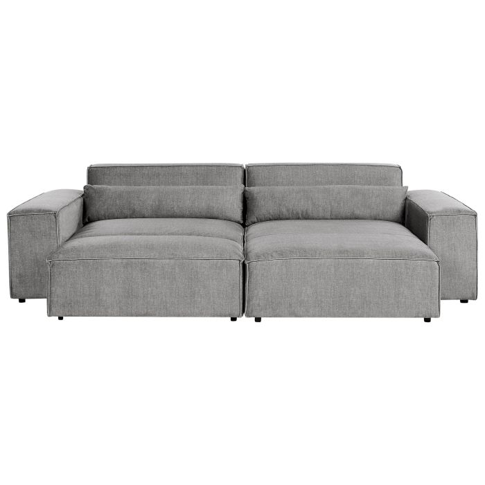 Left Hand 2 Seater Modular Fabric Corner Sofa with Ottoman Grey HELLNAR