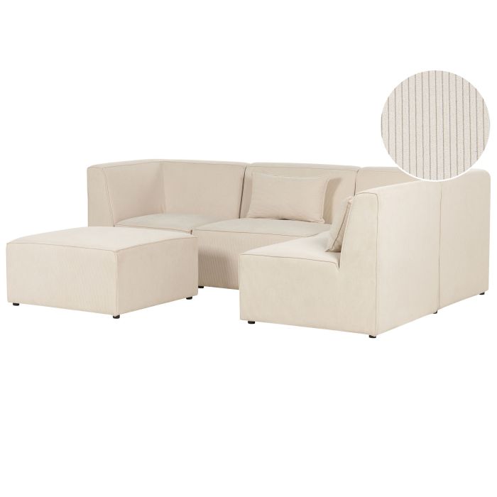 Left Hand 4 Seater Modular Jumbo Cord Corner Sofa with Ottoman Beige LEMVIG