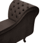 The marvellous chaise lounge is an elegant piece to add to your interior, especially suitable for living rooms and halls. Upholstered with velvet, it is sturdy and pleasant to touch. The chaise lounge is additionally embellished with tufted buttons and nailhead trim. A combination of engineered wood and hardwood make the frame and legs exceptionally durable, warranting great stability and longevity. Details: Color: Brown, Black. Main material: Velvet. Additional material: Larch Wood, Plywood. Material Composition: 100% Polyester Weight: 34 Assembly: Full Assembly Required Wood type: Larix gmelinii (Rupr.) Wood Origin: China Weight Capacity: 180 Legs Height: 20 Padding Thickness: 20 Seat Height: 43