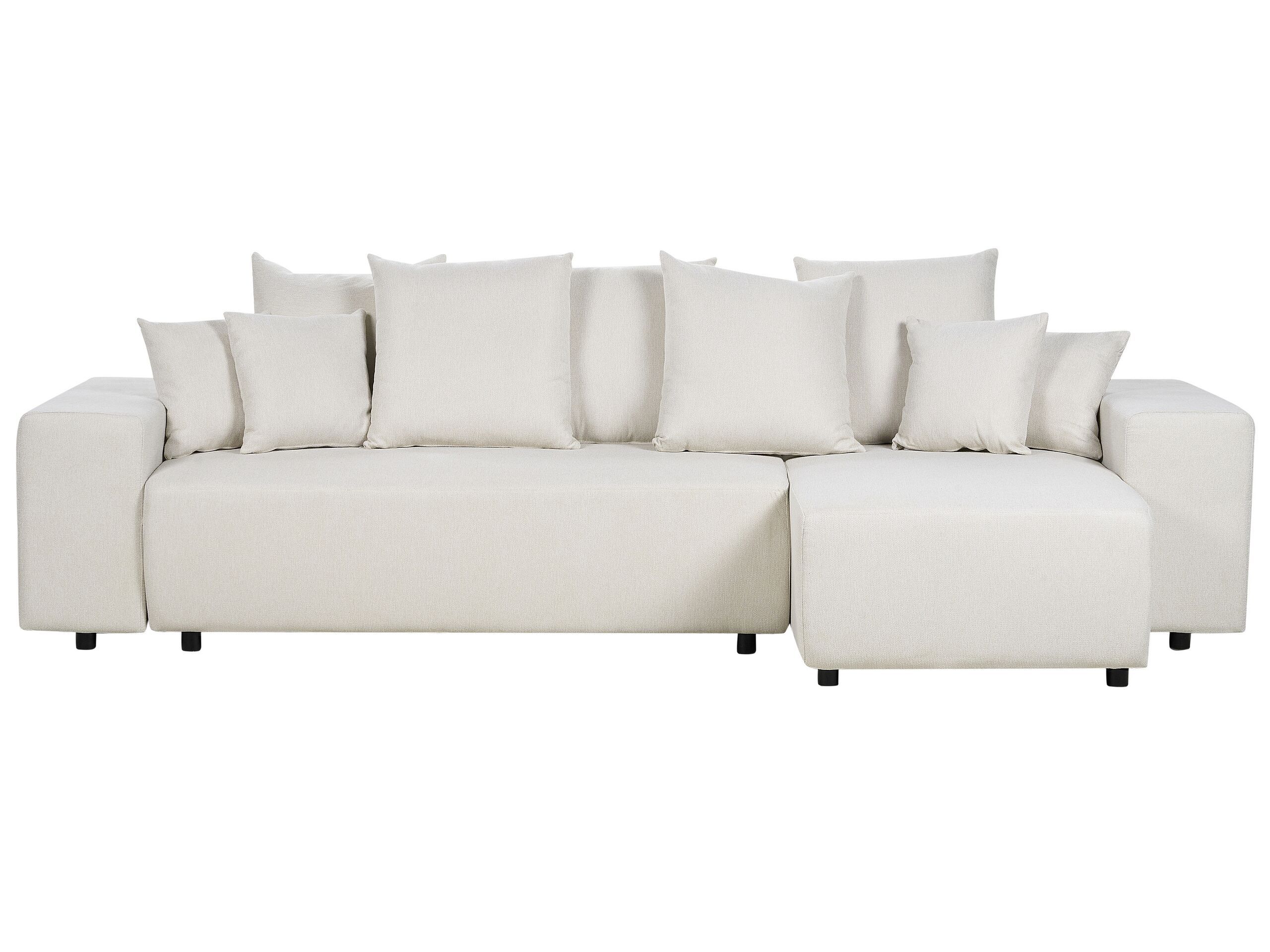 Left Hand Fabric Corner Sofa Bed with Storage Light Beige LUSPA