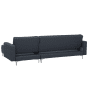 This large corner sofa is an ideal anchor piece for your living room, inviting and homely. Versatile in design, the sofa can be turned into a comfortable bed for two thanks to the adjustable backrest. Additionally, the chaise can be positioned on either side to suit your needs. Fully upholstered in high-quality, dark grey fabric with elegant tufting, this corner sofa offers both functionality and timeless style that will highlight the best of any modern home. The whole piece is kept stable thanks to metal legs. Details: Color: Grey, Silver. Main material: Polyester. Additional material: Wood, Metal. Material Composition: 100% Polyester Weight: 69 Capacity: 4 People Assembly: Partial Assembly Required Legs Height: 13 Padding Thickness: 15 Seat Height: 36 Sleeping Surface: 241x112