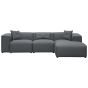 A chaise-end sofa that instantly becomes the centrepiece of any modern, traditional or minimalist living room. Its robust, wooden frame and synthetic legs ensure longevity, while the soft upholstery covers thick layers of foam that guarantee comfortable seating. The sleek lines and simplistic design of the sofa are enriched by three scatter cushions that add a homely charm to the overall appeal of the furniture. The chaise longue is placed on the left side of the sofa from the sitting perspective. Details: Color: Grey, Black. Main material: Polyester. Additional material: Pine Wood, Synthetic Material, Plywood. Material Composition: 100% Polyester Weight: 80 Capacity: 3 People Assembly: Partial Assembly Required Wood type: Pinus massoniana Wood Origin: China Cushions Dimensions: 60x28/40x40 Legs Height: 3 Padding Thickness: 43 Seat Height: 46