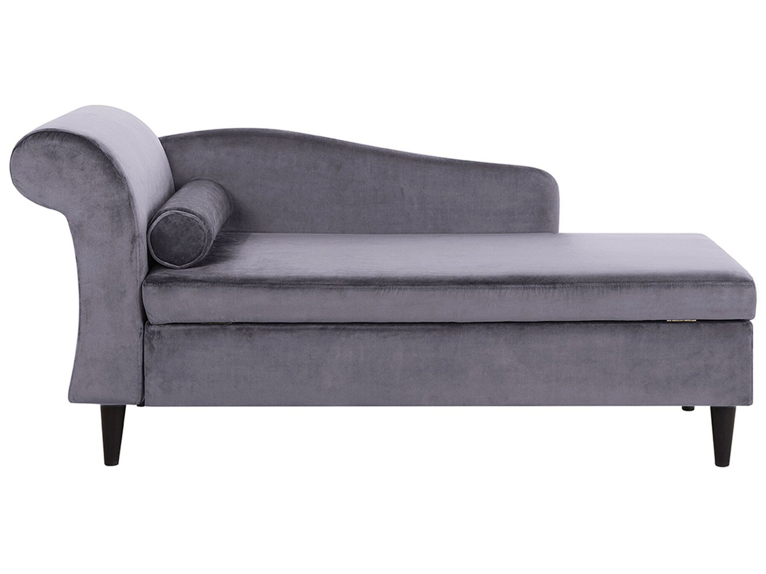This classic style chaise-lounge instantly becomes the focal point of the room, thanks to its beautiful design. The elegant shape, eucalyptus wood legs and soft padding provide a perfect spot for an afternoon nap or just a perfect location for relaxation. Featuring a practical storage space underneath the seat, it allows for storing a wide range of living room accessories such as pillows or blankets, to always have them on hand. Details: Color: Grey, Dark Wood. Main material: Velvet. Additional material: Pine Wood, Eucalyptus Wood. Material Composition: 100% Polyester Weight: 37 Assembly: Partial Assembly Required Wood type: Pinus massoniana, Eucalyptus grandis Wood Origin: China Weight Capacity: 300 Cushions Dimensions: 54x13 Legs Height: 16 Padding Thickness: 11 Seat Height: 44