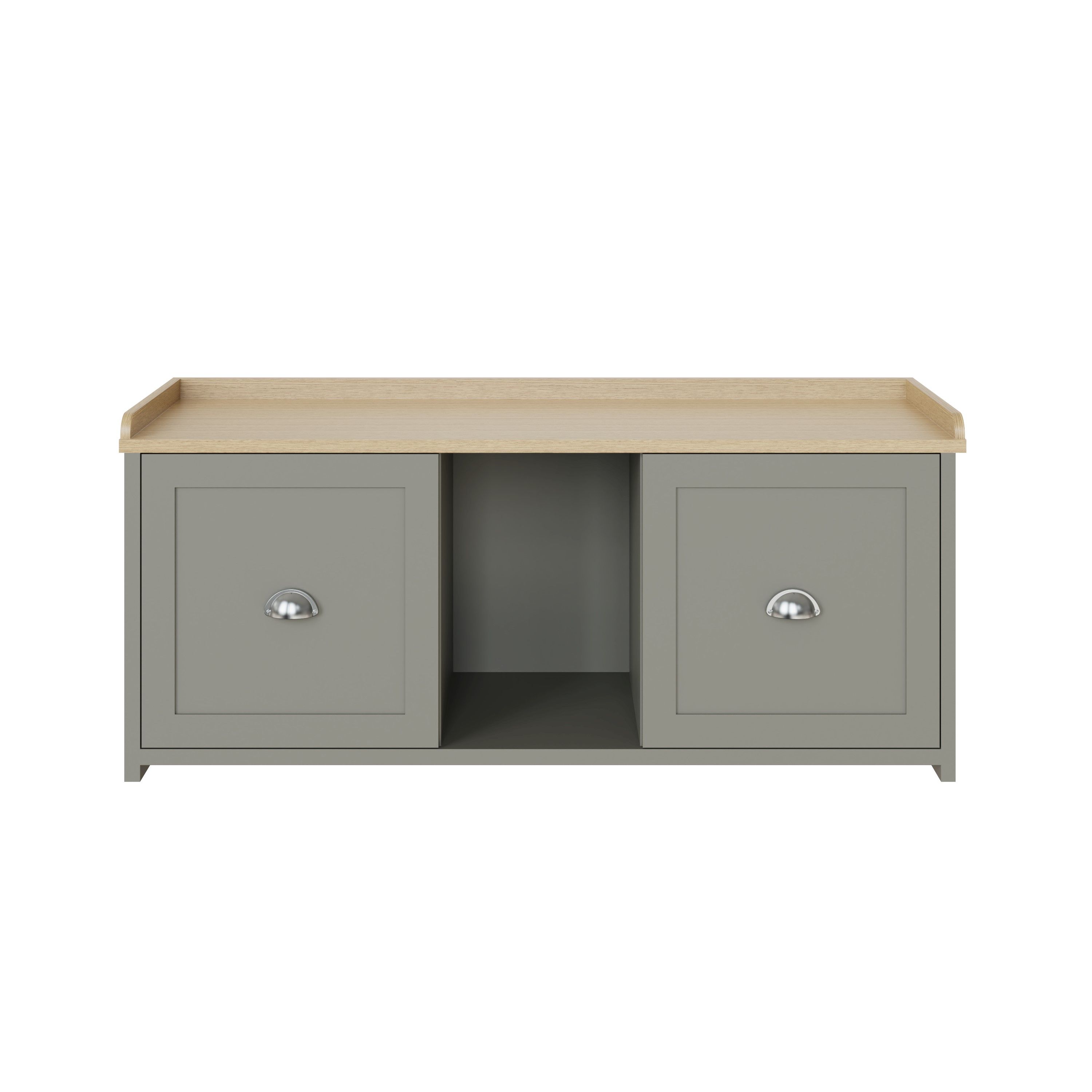 LEVIS Cream Shoe Cabinet - 2 Door Shoe Bench with Oak Effect Top and Concealed Storage