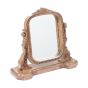 This vintage style mirror, crafted from durable mango wood, is the perfect blend of practicality and elegance. Adorned with intricate carvings, it adds a touch of antique charm to any dressing table while offering an adjustable angle for effortless makeup or skincare routines. Whether for everyday use or as a decorative feature, this mirror brings both style and function to your space.