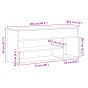 Keep your shoes away from cluttering and create a tidy environment with this elegant shoe bench! Stable and durable material: Engineered wood is a durable and stable material with a smooth surface that is resistant to moisture, warping, and splitting, making it a reliable choice for a variety of projects.Ample storage space: The shoe cabinet provides ample storage space for a variety of shoes, keeping them neatly organised and easy to access.Practical top: Featuring a smooth and sturdy top, the shoe storage cabinet provides a comfortable seating area for putting on or taking off shoes, adding both functionality and style to your space.Easy to maintain: Thanks to its smooth surface, the shoe organiser is easy to clean with a damp cloth and requires less maintenance.