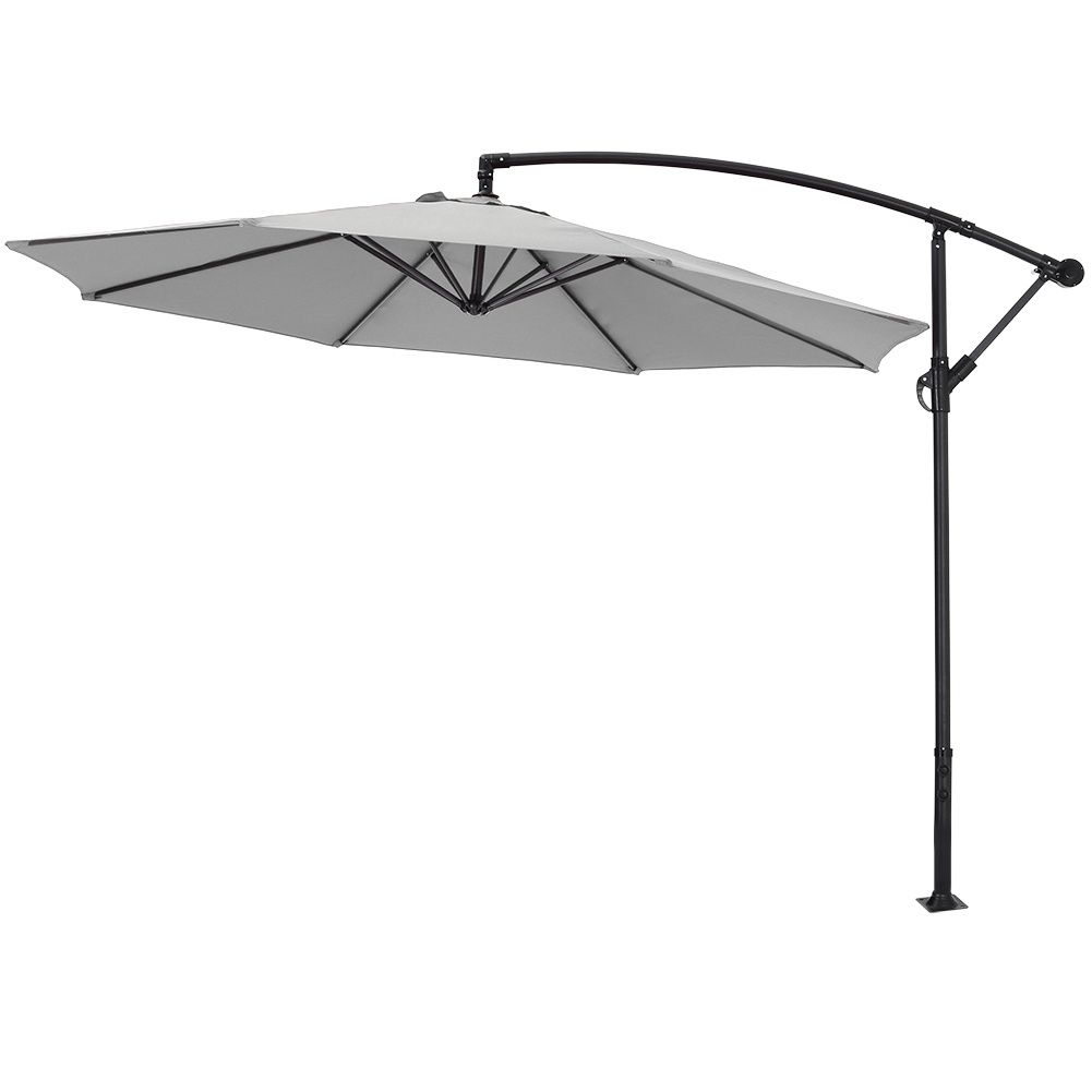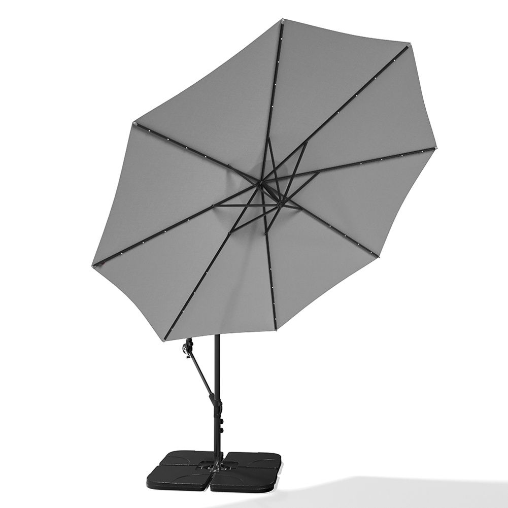 Light Grey Large 3M Cantilever Parasol with Cross and 4-Piece Base