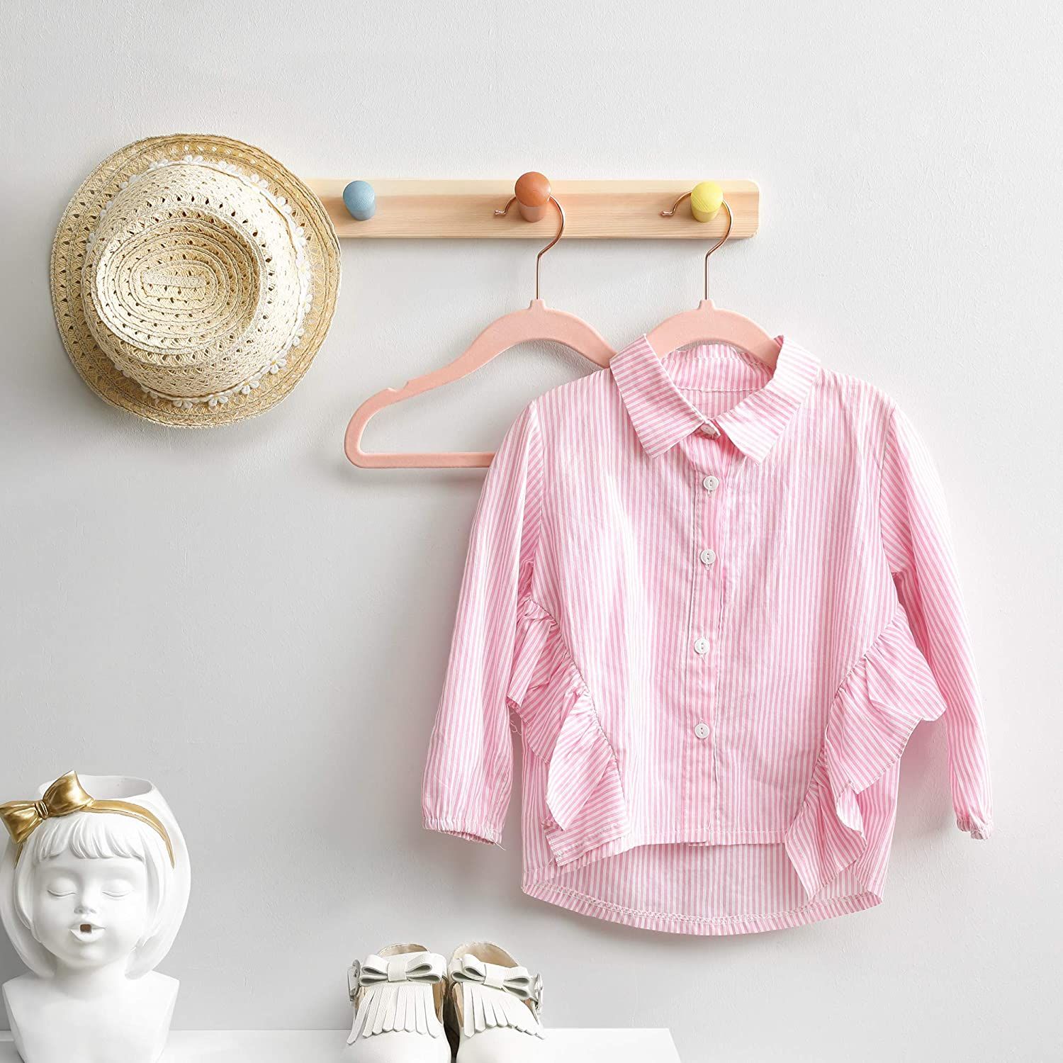 Papa! Mum! I can't find my favourite T-shirt!” If this scene is familiar to you, then these baby hangers of 30 x 0.5 x 20.5 cm are just the thing you need to help out.Practical Helper: The ends of these hangers are curved, making them ideal for T-shirts and dress shirts without leaving unpleasant bumps. Due to the notches in the shoulder area, the hangers are also suitable for hanging up tops and undershirts.Anti-Slip Surface: The surface is also covered with high-quality, lint-free velvet, which is a tried and tested remedy against slipping garments. Finally, every dress will have its own comfortable home!Let Your Children Decide: The thin hangers save space and keep your wardrobe tidy. The 360° swivel metal hook makes it easy to grip and reposition the hanger. Even children will be thrilled by their neatly hanging clothes, because from now on they can finally choose their outfits themselves.