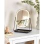 See more with this beautiful and functional table mirror. With an inbuilt LED light, available in three colour temperatures, you’ll be able to do a perfect makeup any time of day. For convenient use the LED is powered by batteries, so you can use the mirror in any place you want, bedroom, bathroom or corridor. There is some additional space on the tray-like base for jewellery, hair accessories etc. Details: Color: Gold, Black. Main material: Metal. Additional material: Glass. Weight: 0.7 Assembly: Does Not Require Assembly