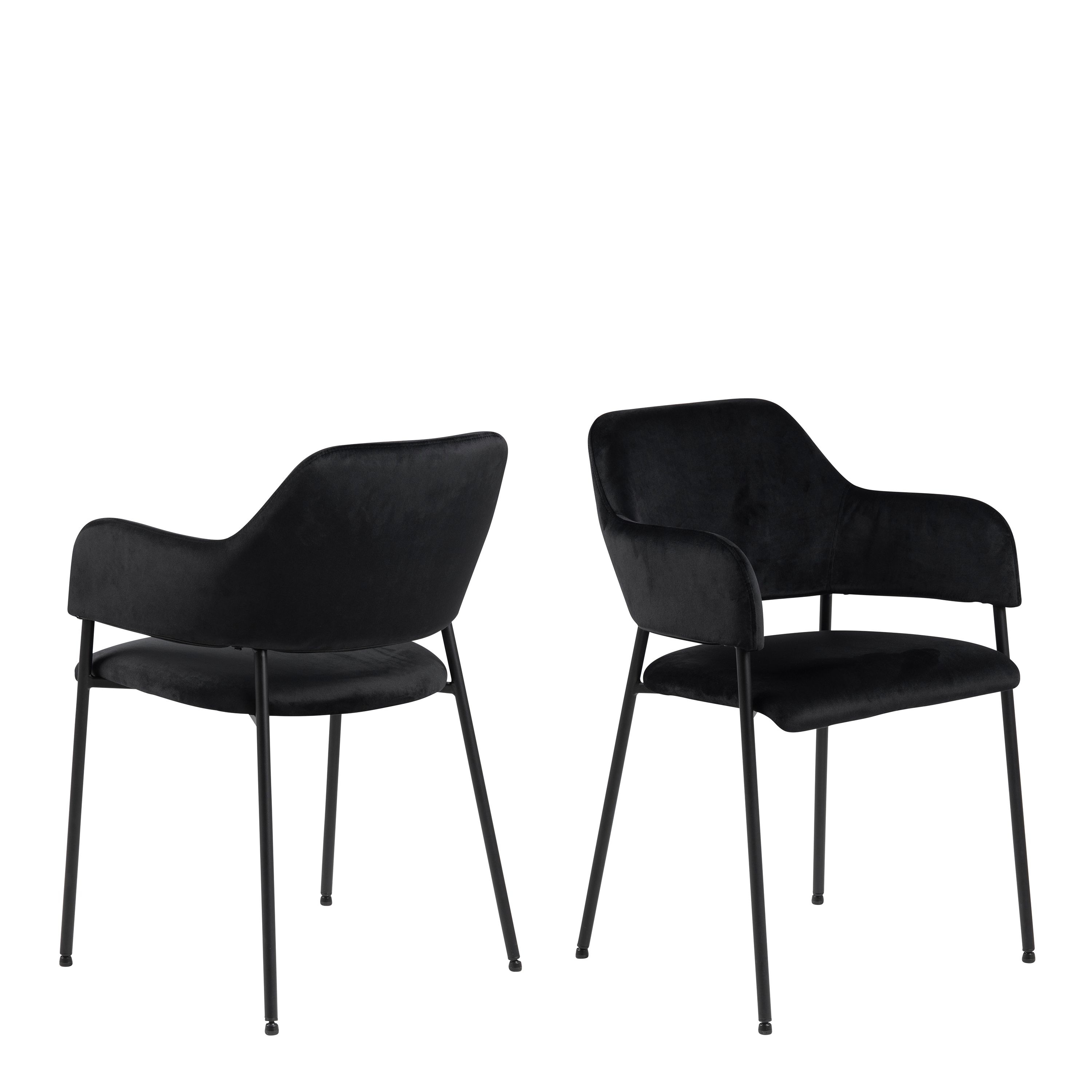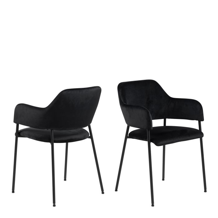 Indulge in the comfort and sleek design of our dining chairs with armrests. The black Dublin fabric provides a luxurious feel, while the matte black steel base adds a modern touch. These chairs come in a set of two, perfect for complementing any dining table
