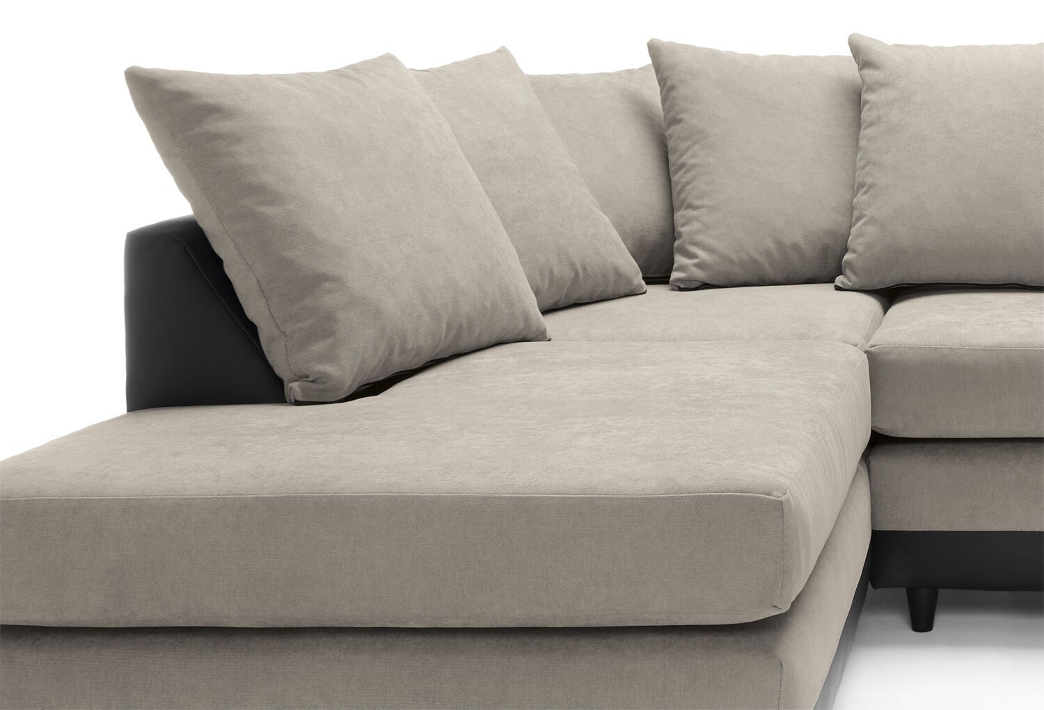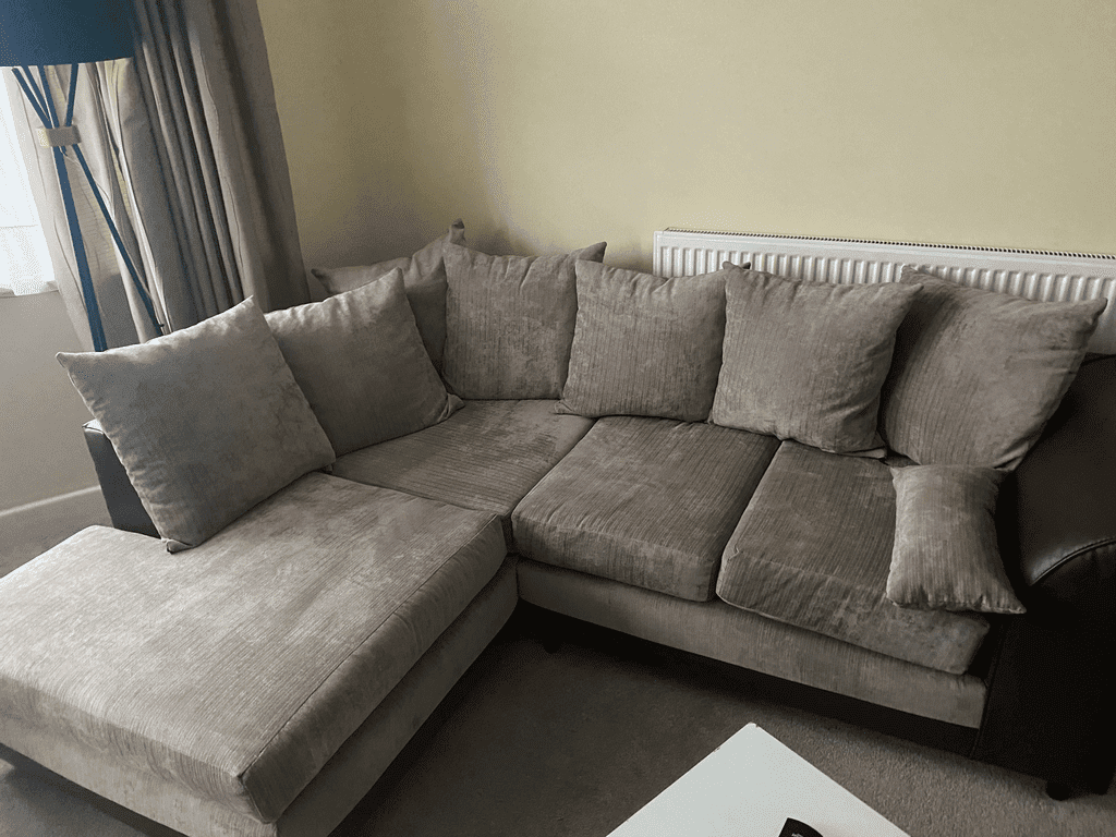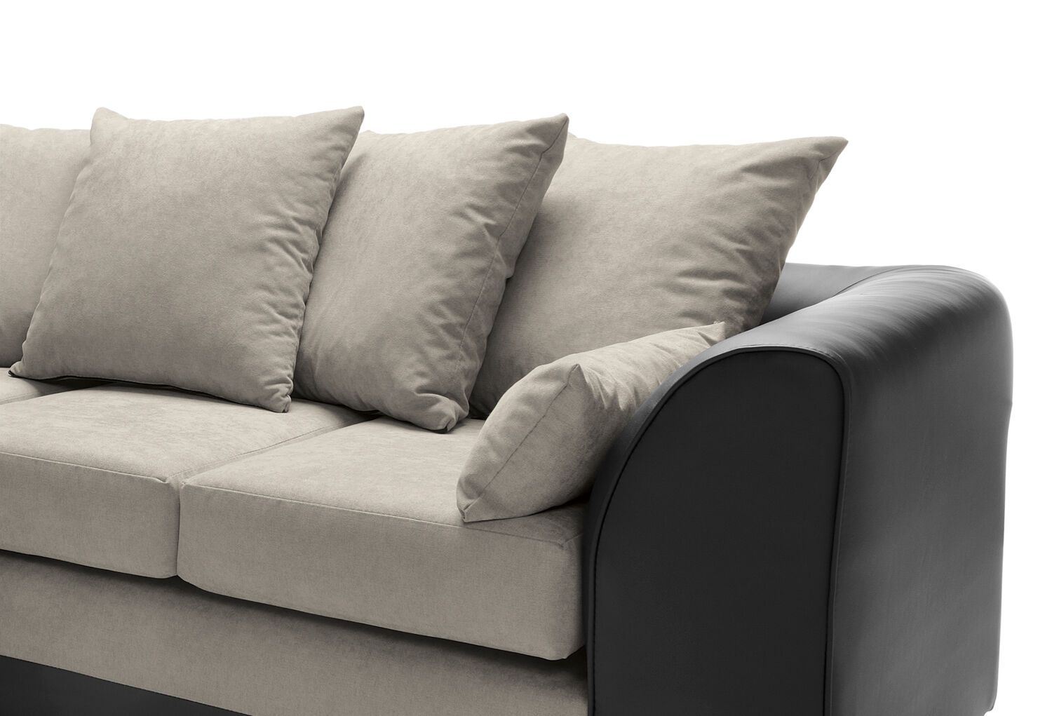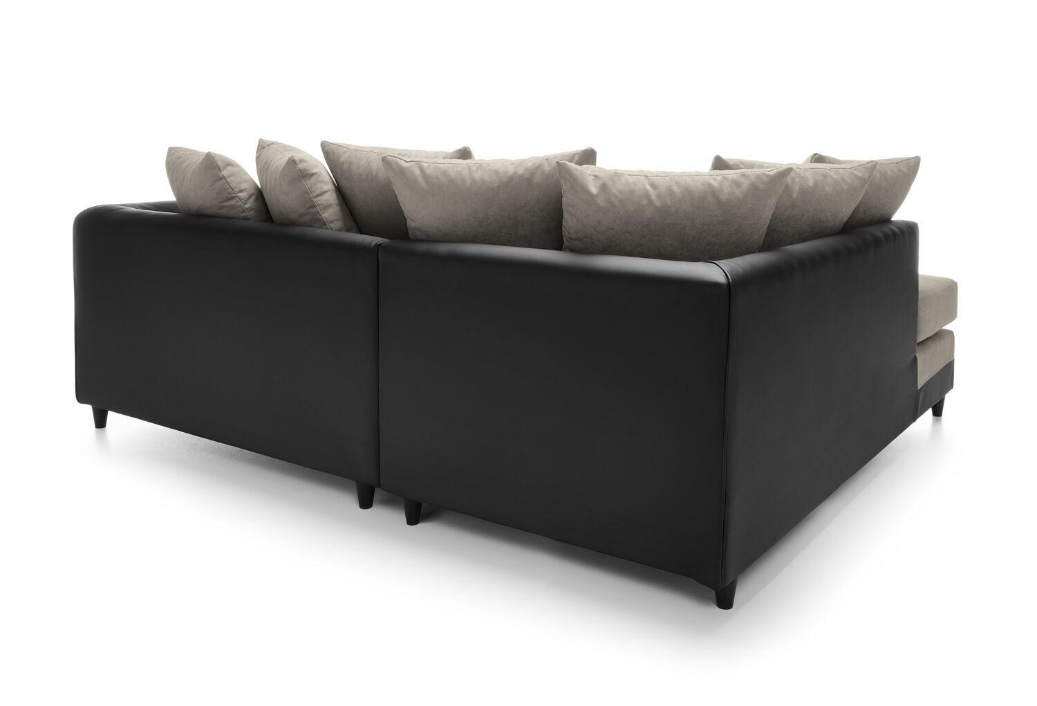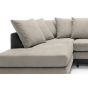 One of our best-selling Linacre scatter back corner sofas. A beautiful corner sofa also available in black and brown colour. Scatter cushions and extra wide angular arms give you all the cushioning your back and arms need, while the extra deep foam filled seats sit atop a plinth base with clean straight lines. Simplicity and a hint of flamboyance collide to give you a stunning sofa. Choice of upholstery is linen, guaranteed to keep you cool and snuggled. Enjoy the Linacre in black and brown, beige colour combination paired with tasteful accent cushions.