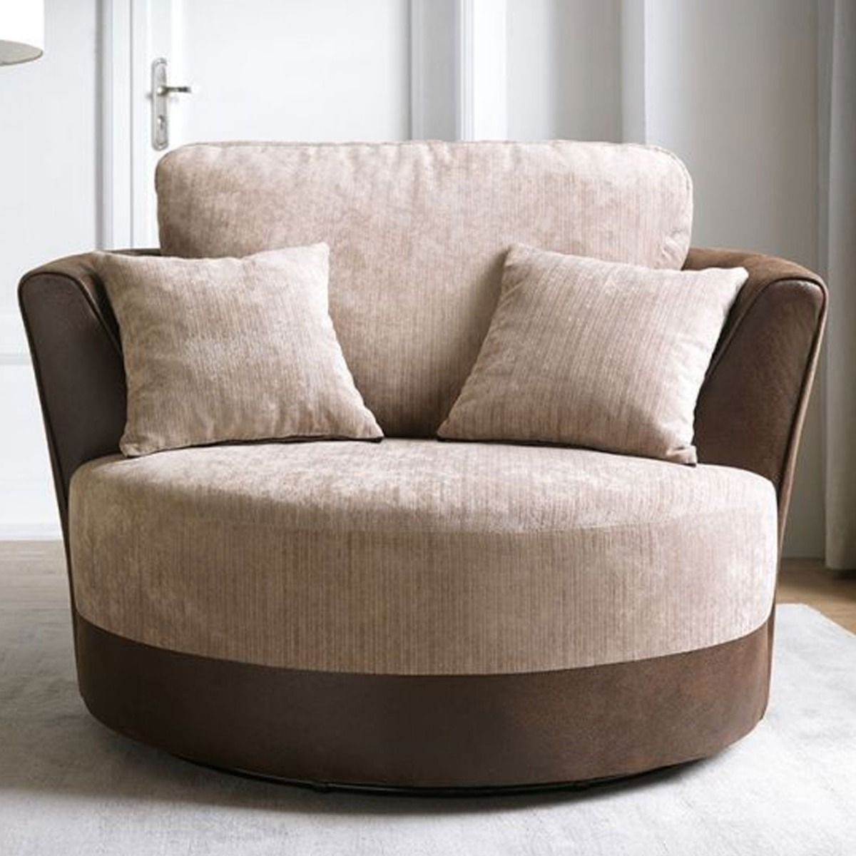 The one and only swivel chair you will need. Linacre swivel chair’s base is made out of solid wood, built for everyday use. Providing the cushioning are deep foam block seats and sumptuously fibre filled back cushions. High-back arm rests circle right back up to the shoulders. Also at your service are two toss pillows, included with the Linacre swivel chair. Upholstery is a combination cord chenille and faux leather fabric. Pick up the Linacre in a black/grey scheme or a livelier brown and beige colour pairing.