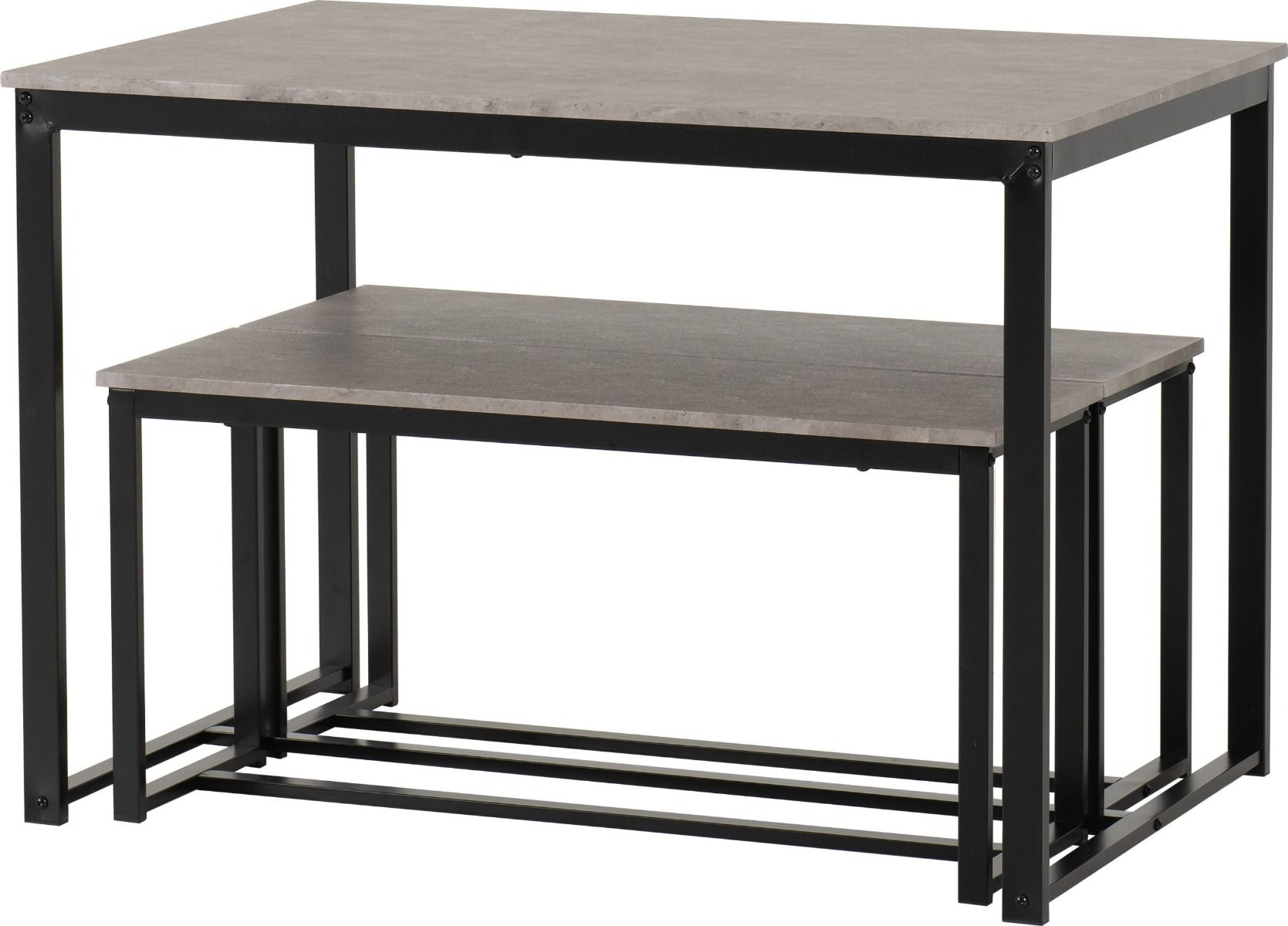 Lincoln 1+2 Dining Bench Set - Stone Effect Black