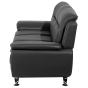 This utterly comfortable sofa combines classic style with modern qualities creating an inviting look that beckons you to sit down. The curvy shape, thickly padded seat and wide armrests are a sharp contrast with slim, metal legs and a horizontal line design on a backrest. Covered with sumptuous faux leather in elegant black, this 3 seater will be the focal point of any living area for a long time.
