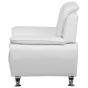 This totally comfortable armchair combines classic style with modern qualities creating an inviting look that beckons you to snuggle up. The curvy shape, thickly padded seat and wide armrests are a sharp contrast with slim, metal legs and a horizontal line design on a backrest. Covered with sumptuous faux leather in elegant white, this reading chair will be the focal point of any living area for a long time.