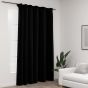Linen-Look Blackout Curtains with Hooks Black 290x245 cm