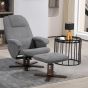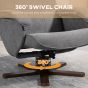 Linen Swivel Recliner Chair with Footstool, Upholstered Reclining Armchair with Wooden Base for Living Room, Grey