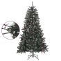 This lovely and lifelike artificial Christmas tree with distinctive tips will become the focal point of your holiday decorations. Hinged construction: This luxury tree has a hinged construction, so the branches will automatically fold down in the right angle. This will make it much easier to put up the tree in the perfect shape, and will save you time as well.Bushy Christmas tree: The Christmas tree is designed with a lot of beautiful PVC tips, giving the tree a beautiful realistic look along with a bushy appearance.Sturdy stand: The artificial tree is made of a sturdy steel stand, which provides the tree with optimal stability.Beautiful decoration: The Christmas tree even comes with cones and berries on it, offering a wonderful natural effect. It is decorated with artificial white snow to create a unique wintery feel.Lasting durability: The Xmas tree can be used again every year, making it a very economical choice compared to a real tree. Note:Each product comes with an assembly manual in the box for easy assembly.
