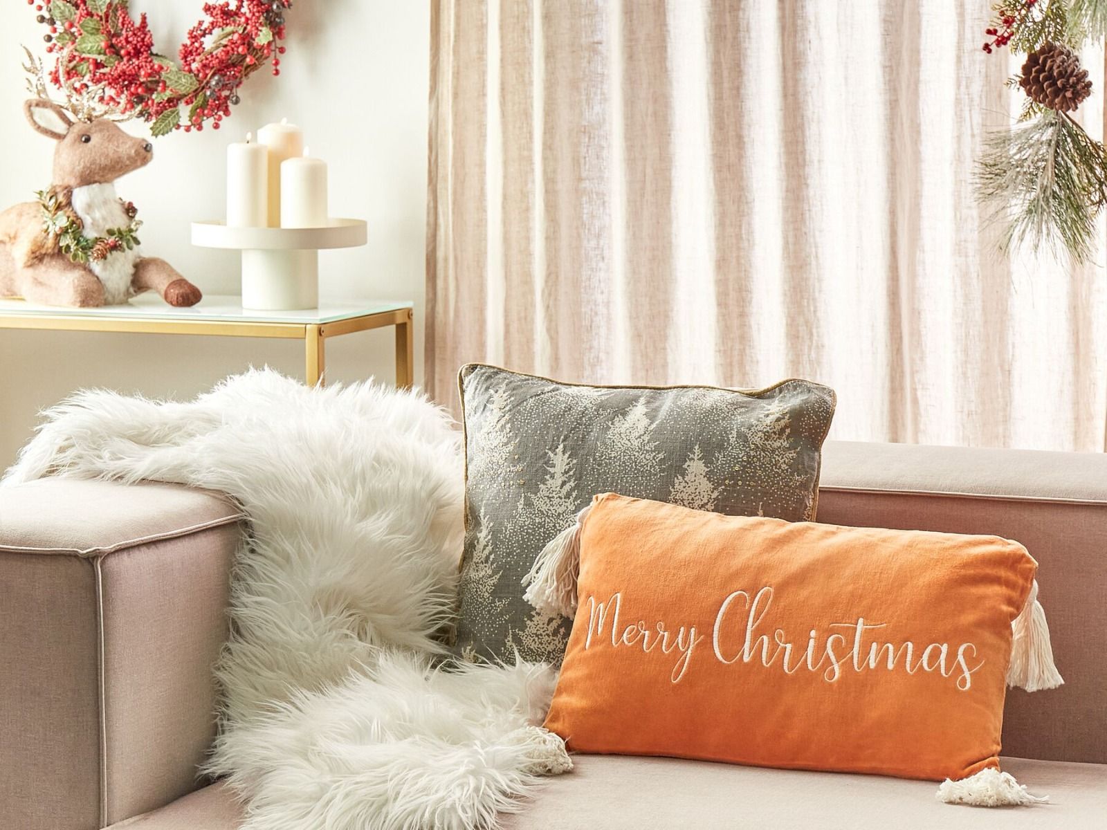 Lithops Velvet Cushion Christmas Motif with Tassels 30 x 50 cm - Orange