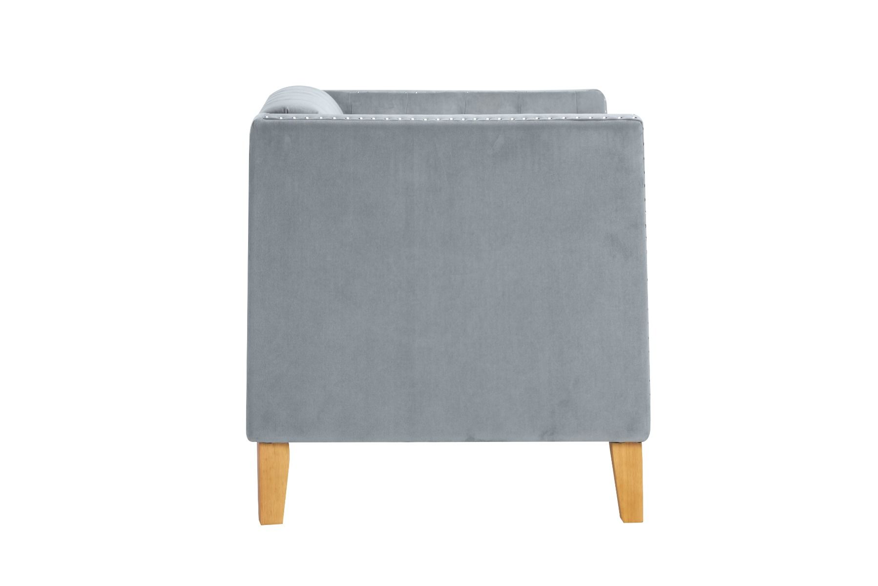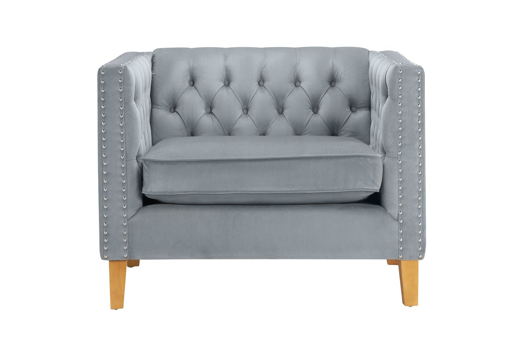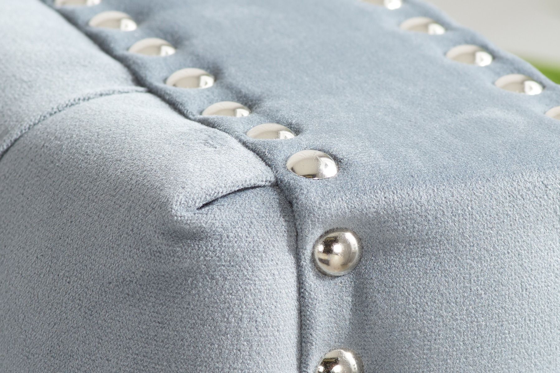 - Upholstered in a good quality velvet fabric and features a studded finish