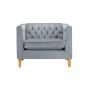 The Florence snuggle chair is modern take on a traditional look featuring a classic buttoned back and squared armrests, upholstered in a grey velvet fabric and features a pretty studded finish. This well-proportioned occasional chair is the perfect fit for a contemporary look. Please note that the legs for the Florence are contained within a zipped compartment in the base prior to assembly. The maximum weight load for this chair is 200 kg. Arrives flat packed.