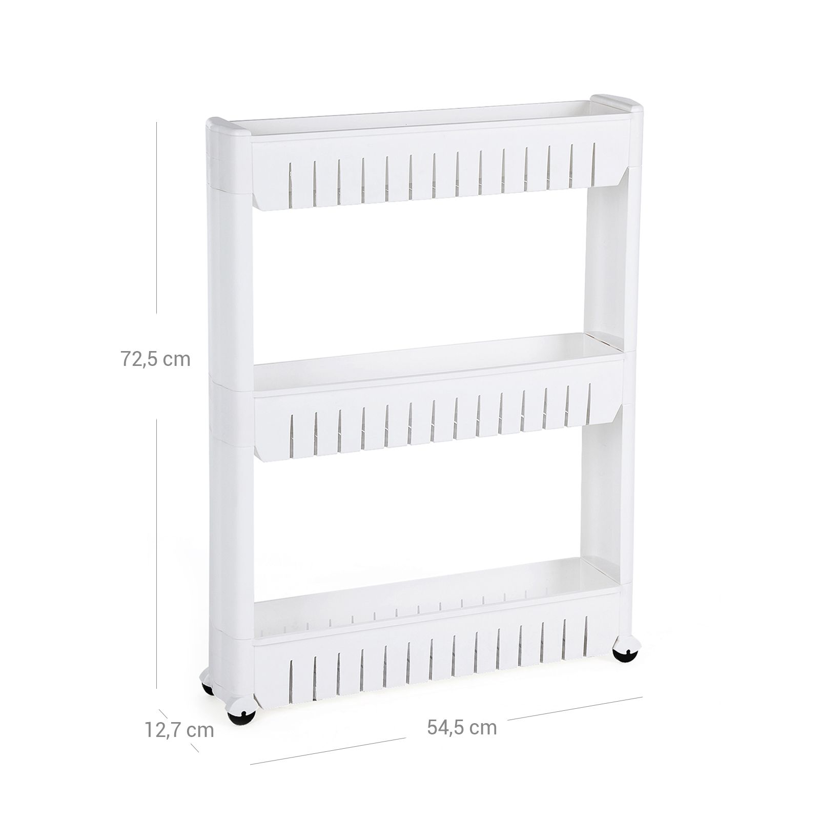 Description: Are you always annoying at the mess? This slide out storage tower from is the perfect solution for you to get a decent home. It fits perfectly in crevice gap in kitchen, bathroom, living room, bedroom etc. And it is suitable to store and organize bottles, snacks, cleaning or rinsing agents, garbage bags, shampoos, medicine and other everyday use items. Made of high-quality PP plastic, which is robust, environmentally friendly and not harmful to health. At Songmics, you always can purchase high-quality items with a good price / performance ratio. Parameters:- Dimensions: 54.5 x 12.7 x 72.5 cm (W x D x H)-
