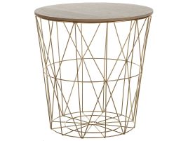 Georgjna Abstract Style Gold Frame Side Table with 2 Drawers - Light Natural Finish