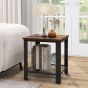 Side Table - 2-Tier End Table Square Sofa Side Table with Mesh Shelf-Rustic Brown
