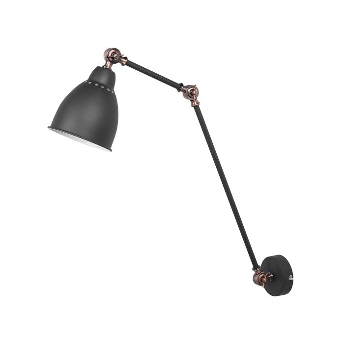 This wall lamp features an arm adjustable in two points as well as a flexible shade making it a perfect choice as a task or reading lighting. The simple construction in a matt finish is accentuated by copper painted joints. The design blends well with any modern interior setting. Details: Color: Grey, Copper. Main material: Metal. Weight: 1 Assembly: Requires Installation