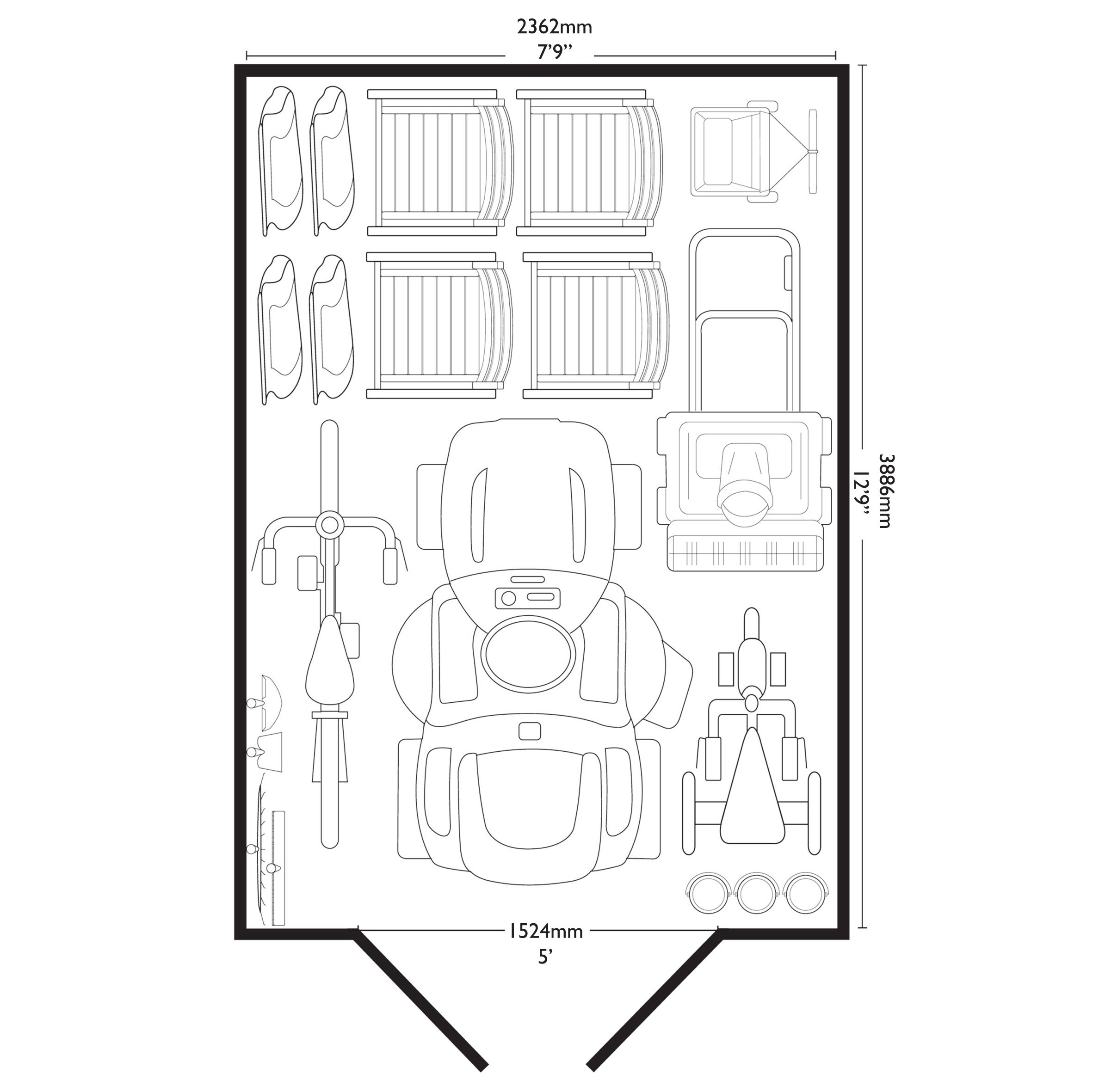 Internal Size: 255cm H, 236cm W, 389cm D