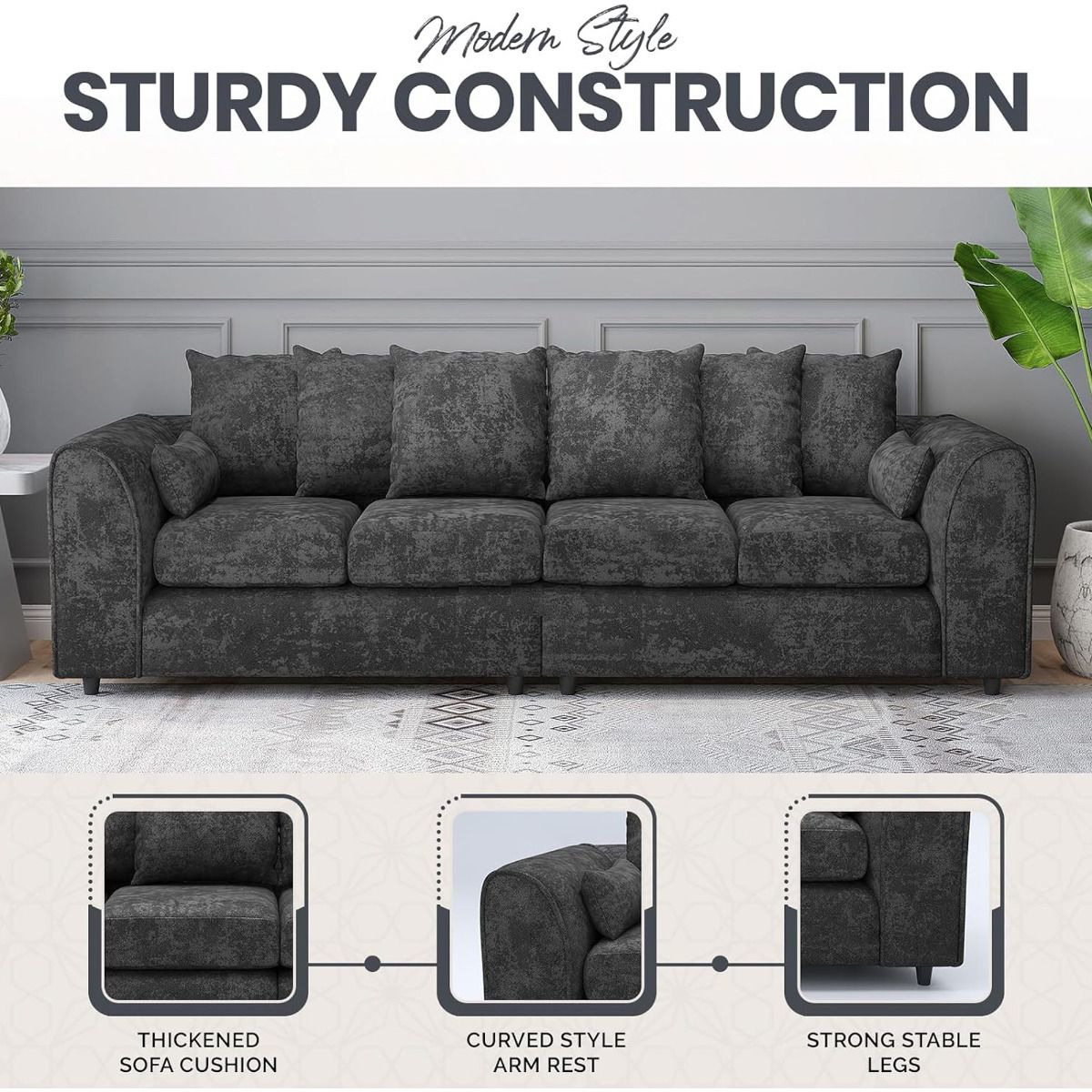 The LORVANI Fabric 4 Seater Fullback Sofa – Light Grey combines modern style with exceptional comfort, making it a perfect addition to any living space. Upholstered in soft-touch fabric, it offers a smooth and inviting feel while being easy to maintain. The full back design provides a clean and structured look, adding a refined and elegant touch to your interior. High-quality foam cushions deliver excellent support and long-lasting comfort, ideal for everyday lounging or entertaining guests. With its spacious seating and contemporary design, this sofa fits seamlessly into both compact and larger living areas, making it a versatile and stylish choice for your home.