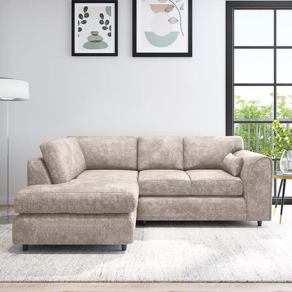LORVANI Fabric 4 Seater L Shaped Fullback Corner Sofa - Beige, Left Hand Facing