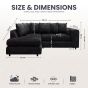 LORVANI Fabric 4 Seater L Shaped Fullback Corner Sofa - Light Grey, Right Hand Facing
