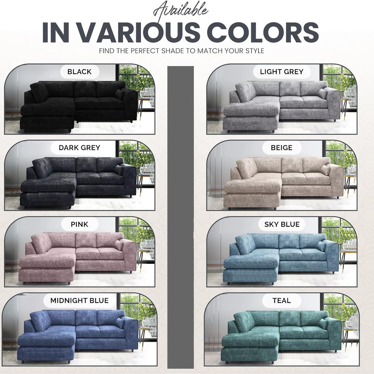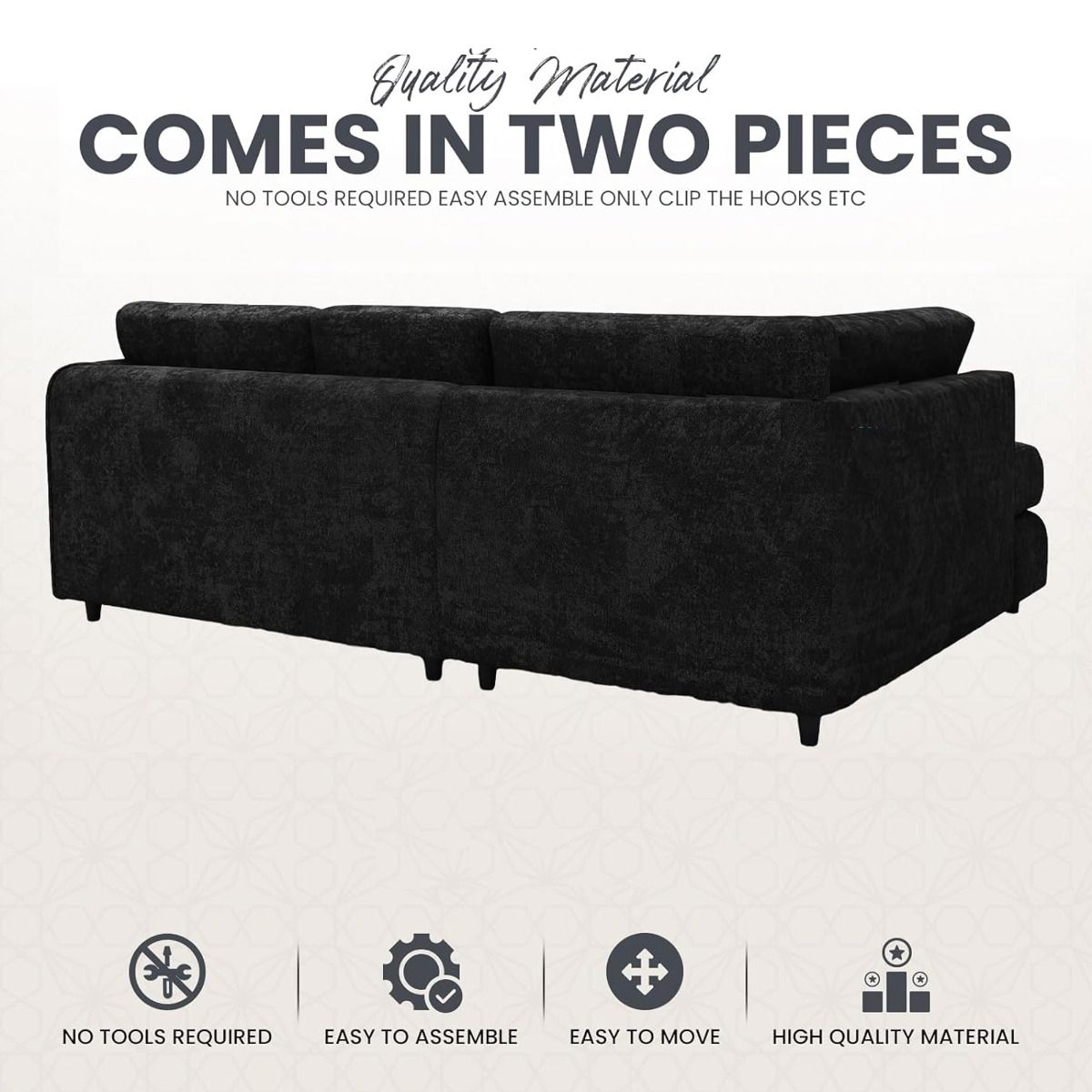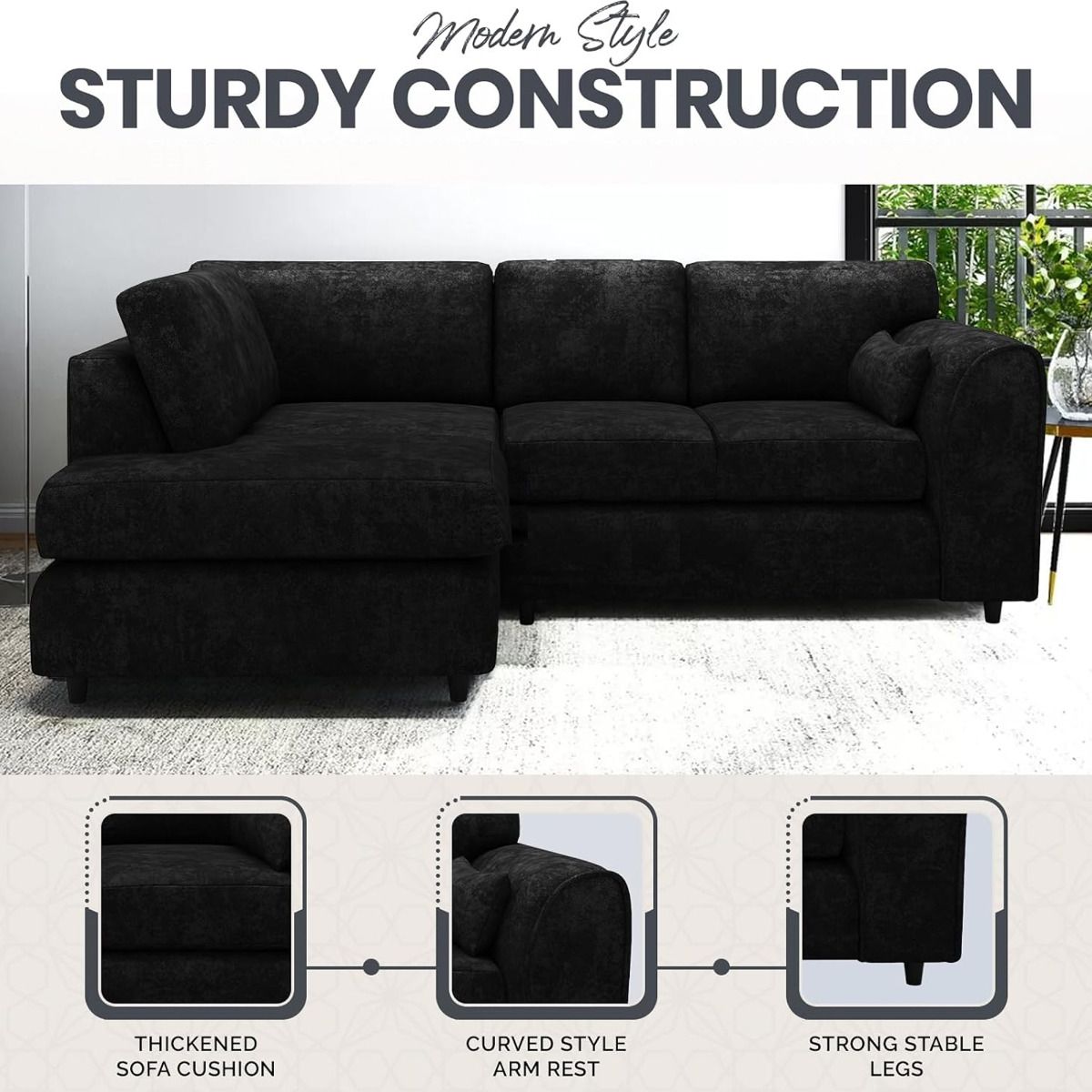 LORVANI Fabric 4 Seater L Shaped Fullback Corner Sofa - Midnight Blue, Right Hand Facing