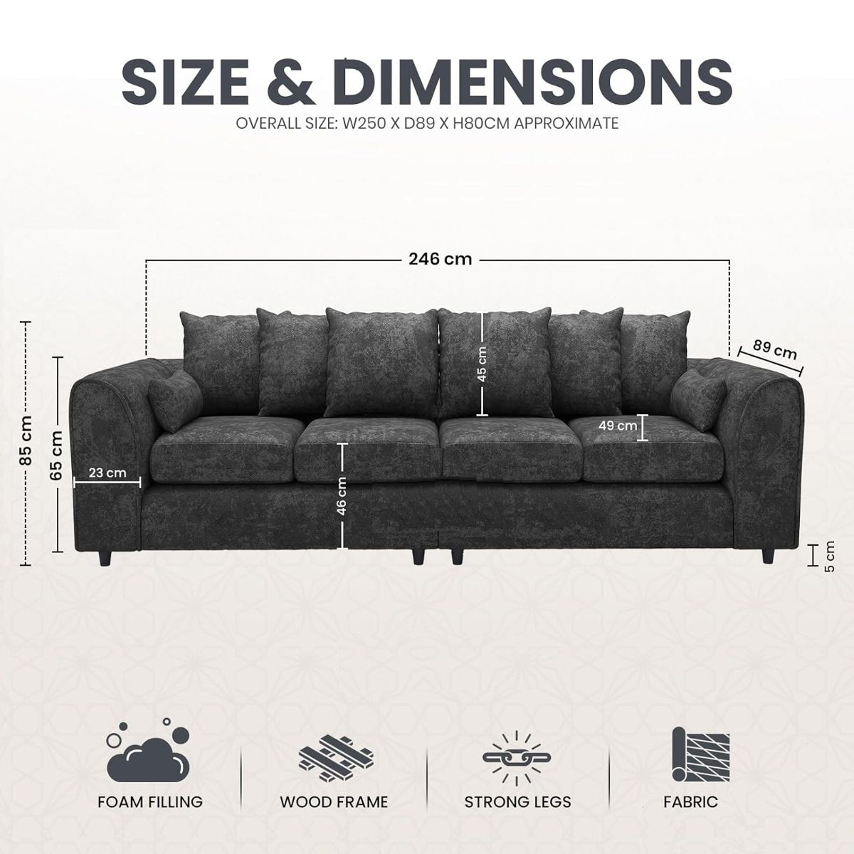 2 Seater Width: 152cm, 3 Seater Width: 180cm, (W) × 89 cm (D) × 90 cm (H)