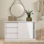 Lottie Sliding Door Storage Display Unit with 3 Drawers - White High Gloss