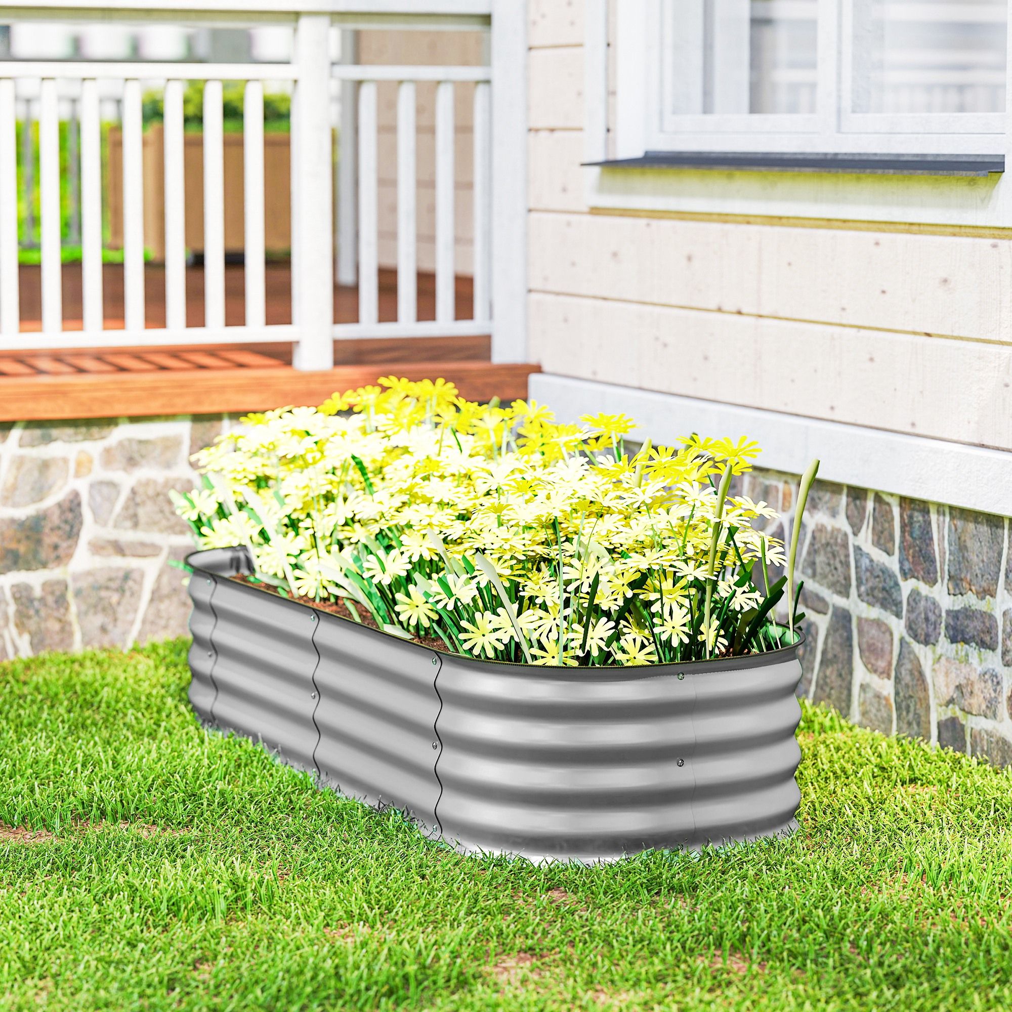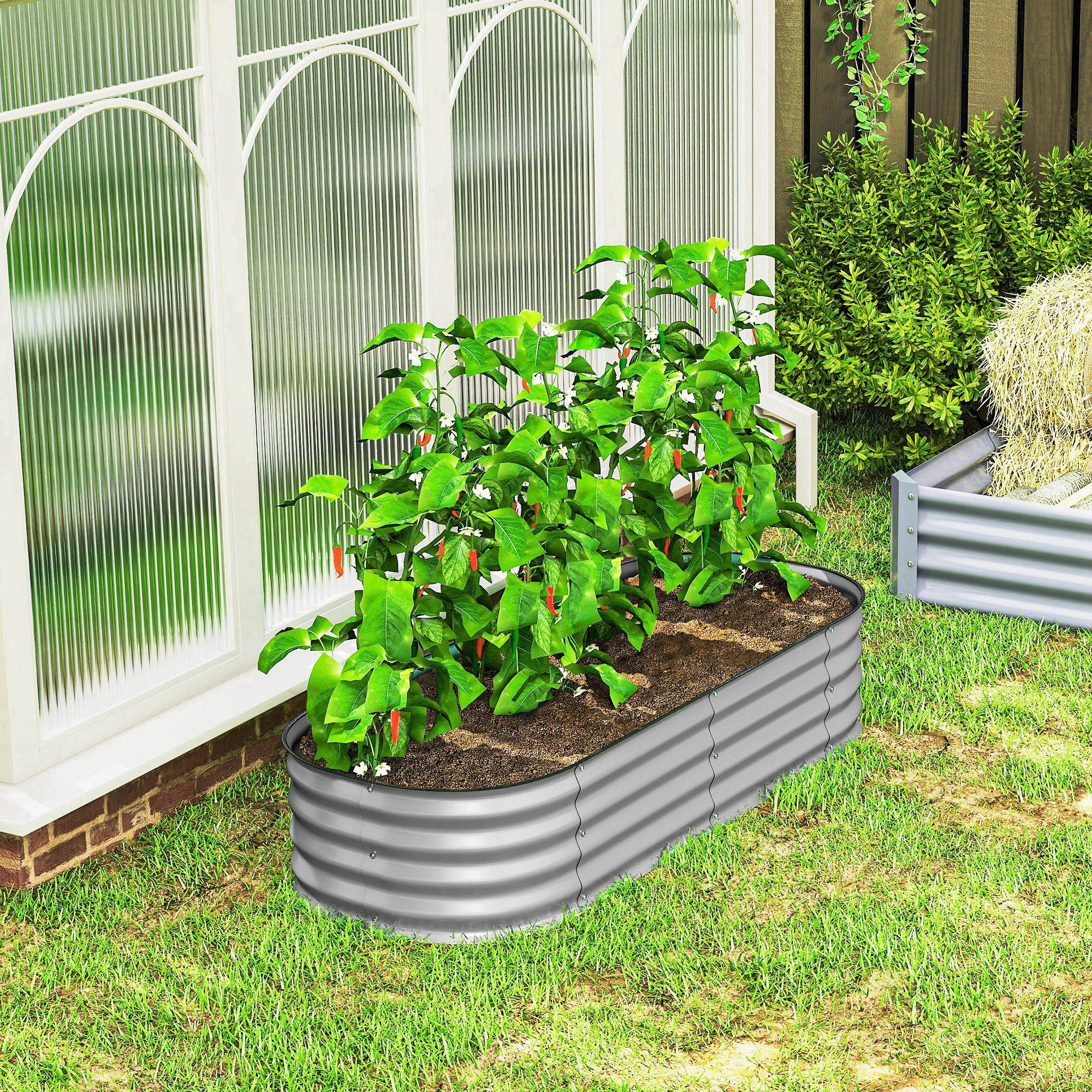 LOXHILL Galvanised Raised Garden Bed Metal Planter - Silver