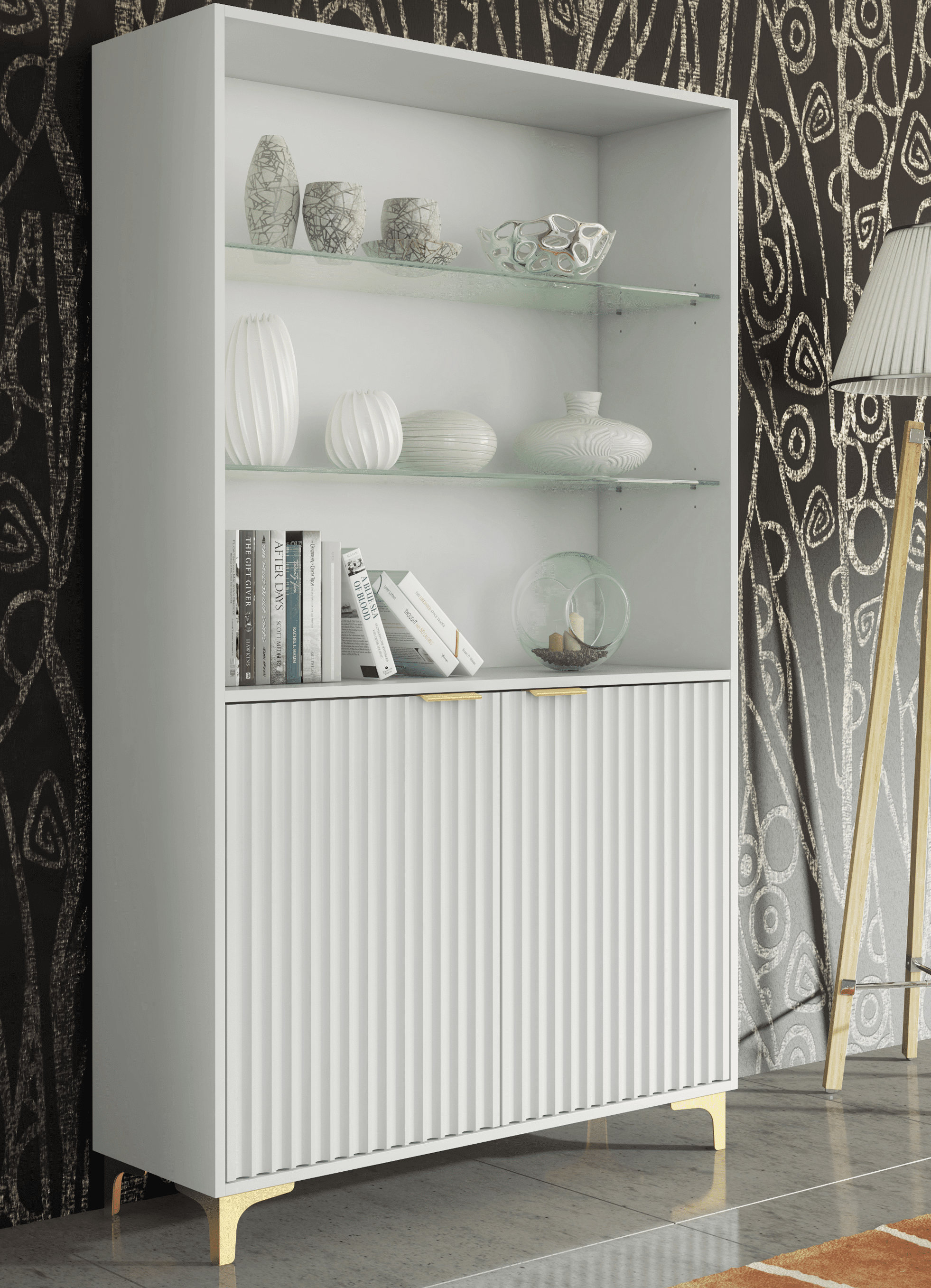 LUKMAN Modern Display Cabinet Matt Body with Gold Handles And Glass Shelves 170cm - White