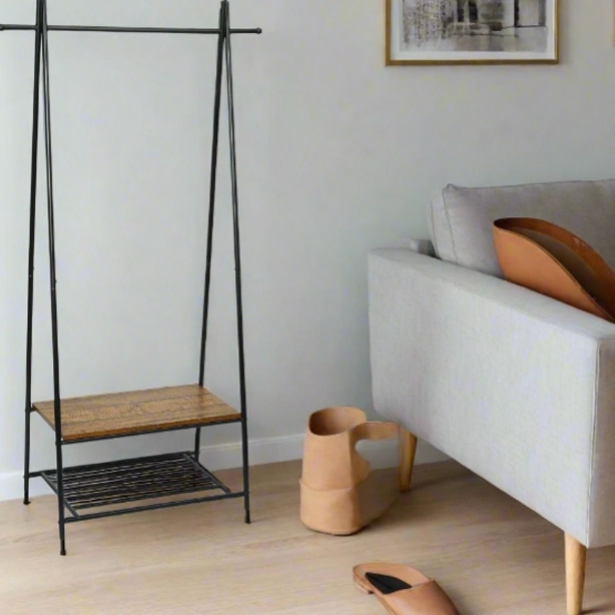 LUMINEX Coat Rack Freestanding Clothes Stand with Shoe Storage and Hat Hooks - Rustic Brown and Black