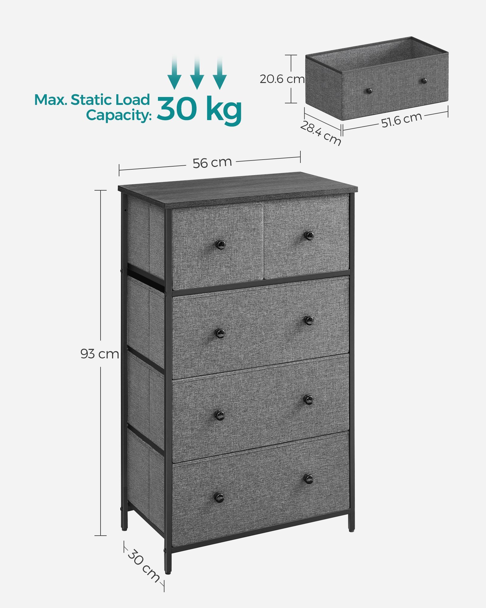 LUMSO Dark Grey Chest of Drawer - Medium-sized, 5 Drawers