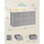 Organize your space with this stylish dove grey storage unit. Featuring a robust steel frame and nine spacious fabric drawers, it offers ample storage for your bedroom or living room. Integrated LED lights illuminate your belongings, while the convenient charging station keeps your devices powered up. Its modern design and practical features make it a perfect addition to any home.