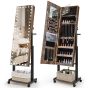 LURIDA Lockable Jewelry Armoire Organizer with 3-Color Dimmable LED Full-Length Mirror-Brown