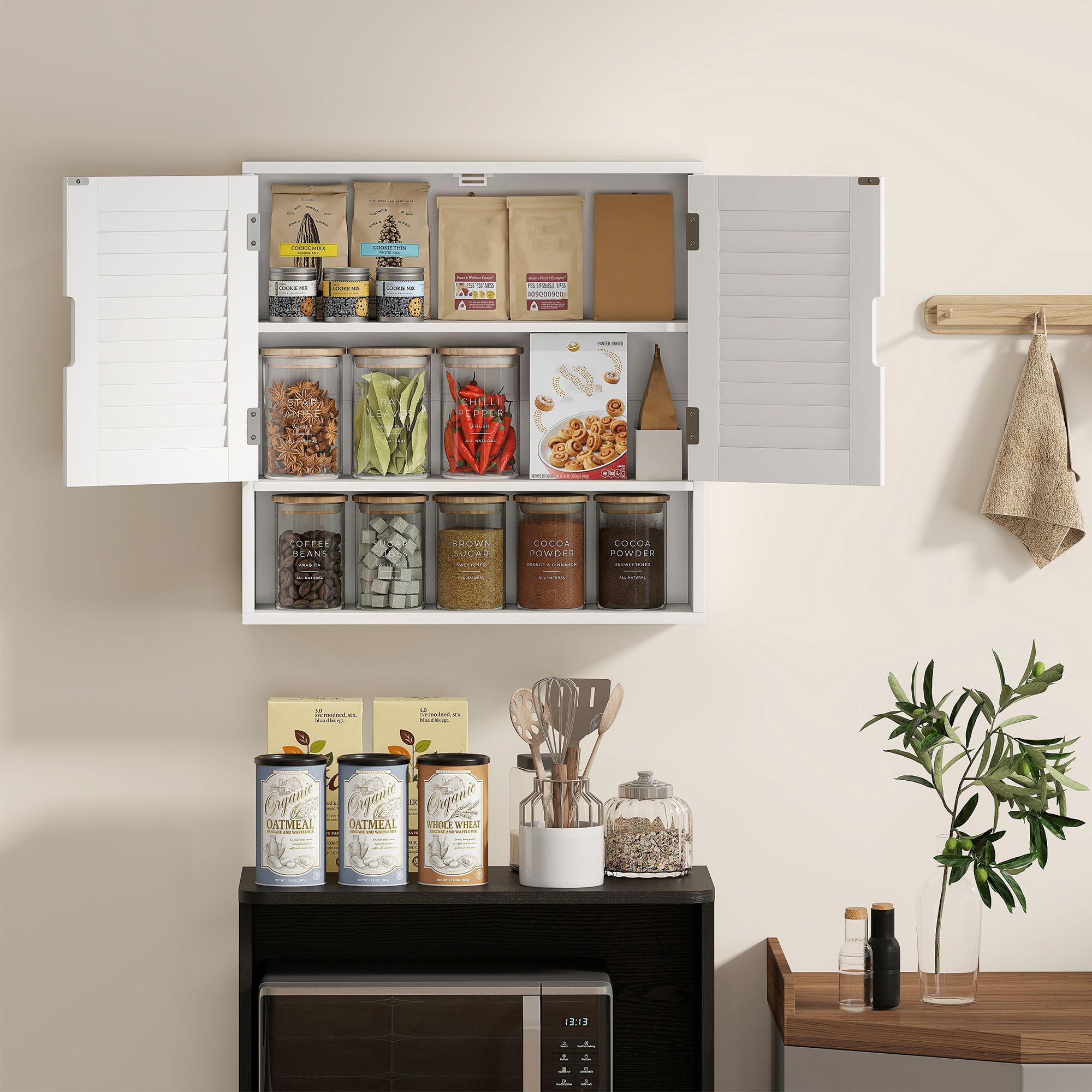 Adjustable shelf: this wall mounted bathroom cabinet features an open sehlf and a cabinet with two shelves, each adjustable by 6. 4 cm, making it simple to store everything from shampoo to towels for an effortlessly organised daily routine. Space-saving design: suitable for smaller bathrooms, this bathroom cabinet makes the most of your wall space to free up countertops, transforming a cluttered area into a tidy, welcoming retreat. Stable build: made from with a sleek painted finish, this bathroom storage cabinet withstands daily use and moisture, offering lasting durability that complements your bathroom decor beautifully. Clean & modern design: this wall cupboard, with its blend of modern minimalism and a classic louvred door, brings a touch of refined character to your bathroom, creating a sophisticated personal care space. Product information: overall dimension: 60 W x 20 D x 60 H cm. Weight capacity: 4 kg (per shelf), 12 kg (overall). Assembly required
