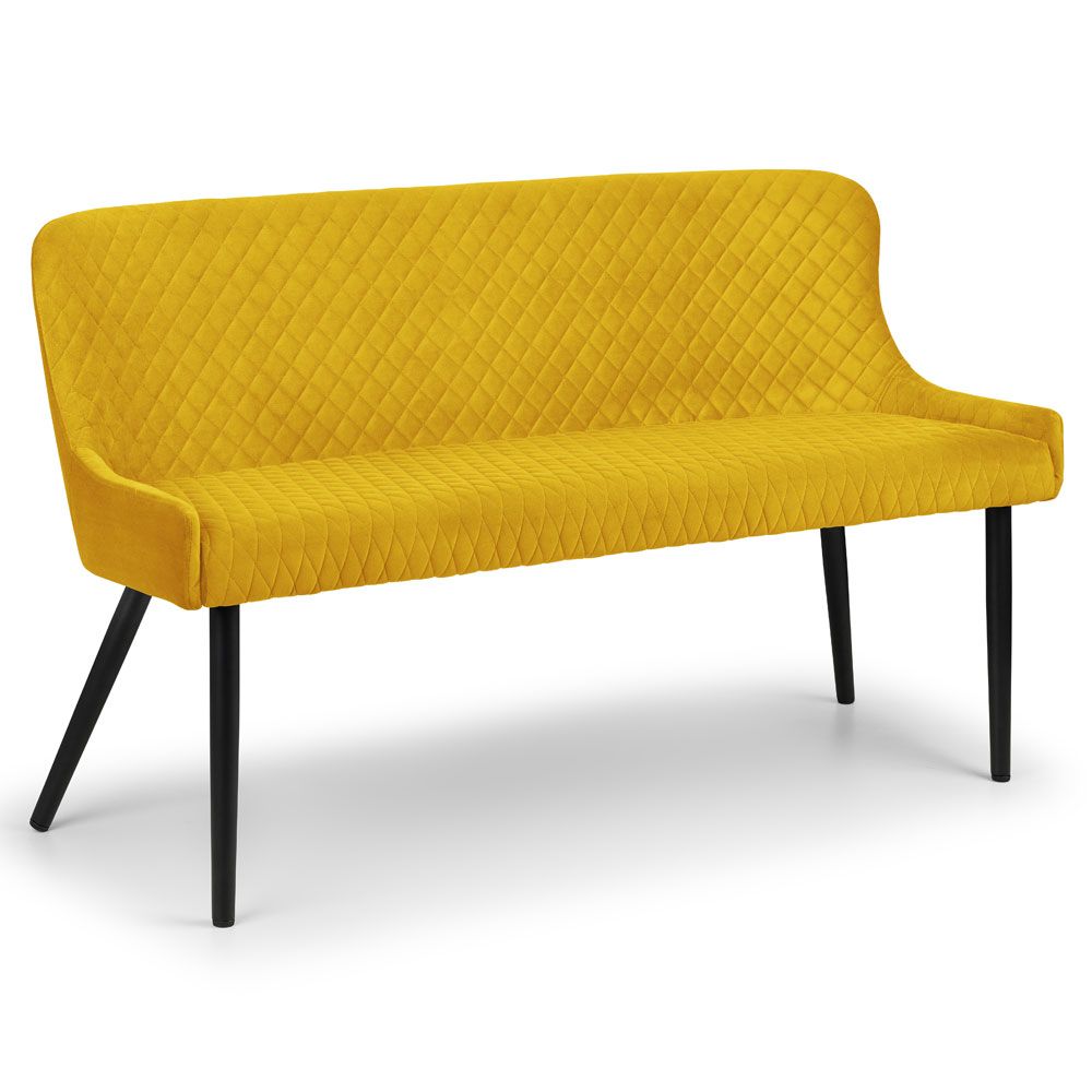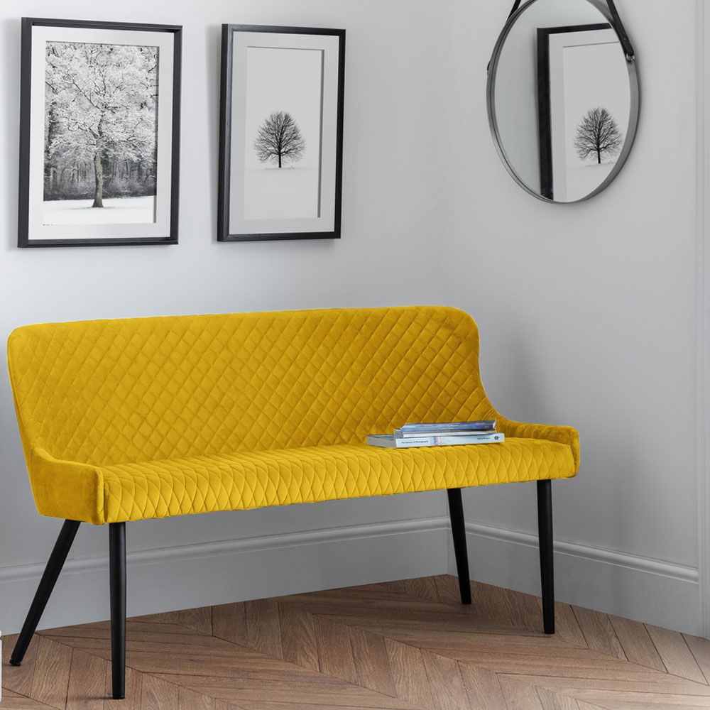 The Luxe High Back Bench offers a classic style with a modern twist, beautifully upholstered in a modern mustard velvet with a luxuriant quilted finish offering depth and texture.