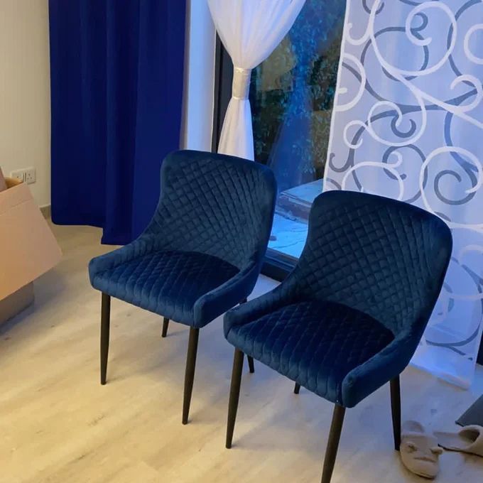 Combining a classic style with a modern twist, the Luxe dining chair is beautifully upholstered in a Blue velvet fabric with luxurious quilted detailing.