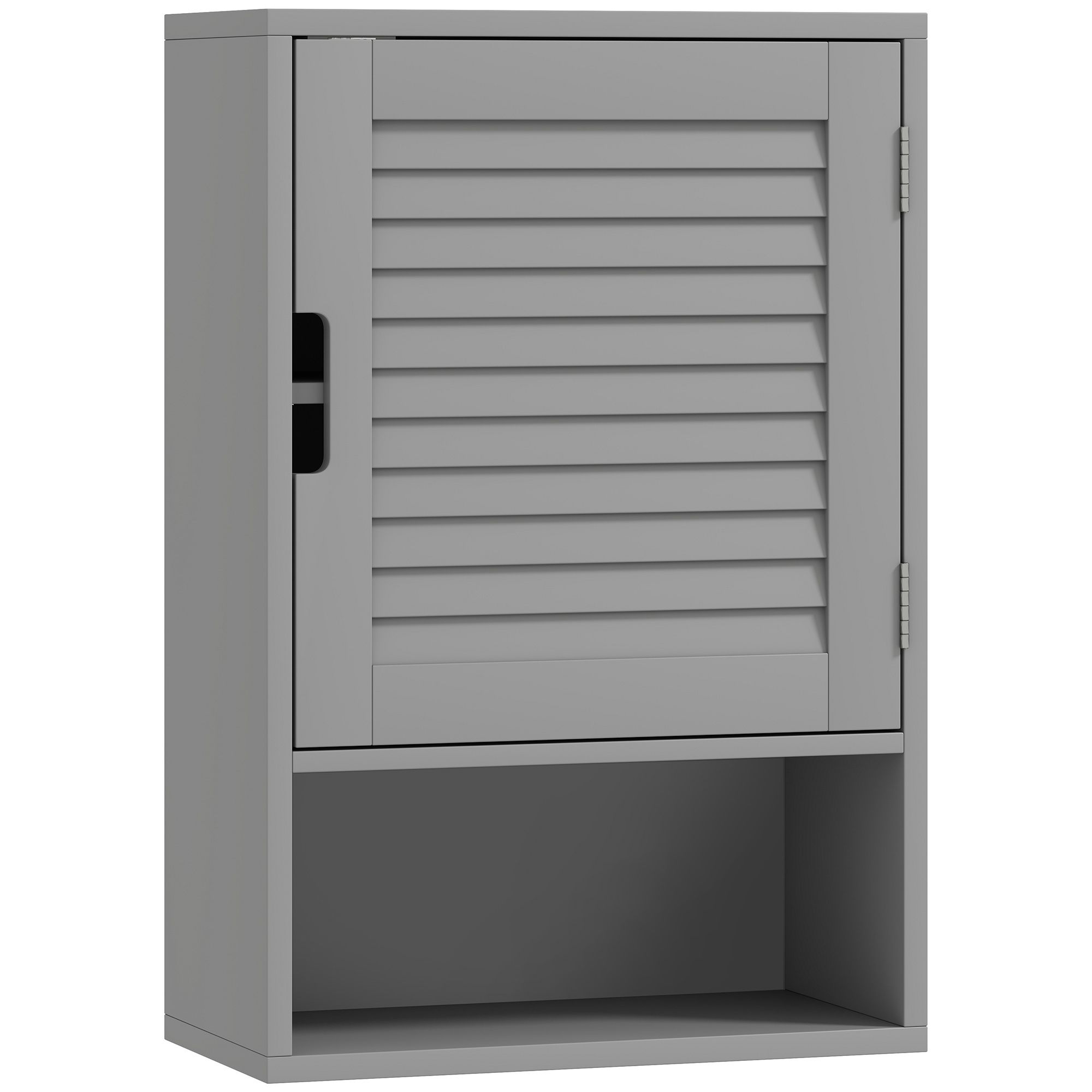 Adjustable shelf: this wall mounted bathroom cabinet features an open sehlf and a cabinet with two shelves, each adjustable by 6. 4 cm, making it simple to store everything from shampoo to towels for an effortlessly organised daily routine. Space-saving design: suitable for smaller bathrooms, this bathroom cabinet makes the most of your wall space to free up countertops, transforming a cluttered area into a tidy, welcoming retreat. Stable build: made from with a sleek painted finish, this bathroom storage cabinet withstands daily use and moisture, offering lasting durability that complements your bathroom decor beautifully. Clean & modern design: this wall cupboard, with its blend of modern minimalism and a classic louvred door, brings a touch of refined character to your bathroom, creating a sophisticated personal care space. Product information: overall dimension: 40 W x 20 D x 60 H cm. Weight capacity: 2 kg (per shelf), 6 kg (overall). Assembly required