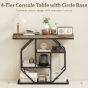 Industrial style statement: make a bold impression with this entryway table, featuring a sleek round metal frame and rustic brown shelves that bring vintage charm and an eye-catching focal point to your entryway. Smart storage solution: four-tier shelves offer plenty of room for books, decor, plants and daily essentials, helping you keep your hallway neat, organisedand inviting with a stylish, functional entry table. Stable & safe design: built for stability and safety, this hall table features a solid 4 cm thick top that supports up to 75 kg in total. Anti-tip kits and adjustable feet ensure reliable balance and protect your floors from scratches. Flexible multi-scene use: this console table works perfectly as an entryway piece to welcome you home, a sofa table to fill empty space, or a hallway display table to enhance your decor with both style and function. Product information: overall dimensions: 100 W x 30 D x 80 H cm. Weight capacity: 30 kg (desktop), 15
