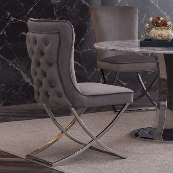 Luxurious Durango Dining Chairs in Grey Velvet - Set of 2 with Stylish Stainless Steel Legs