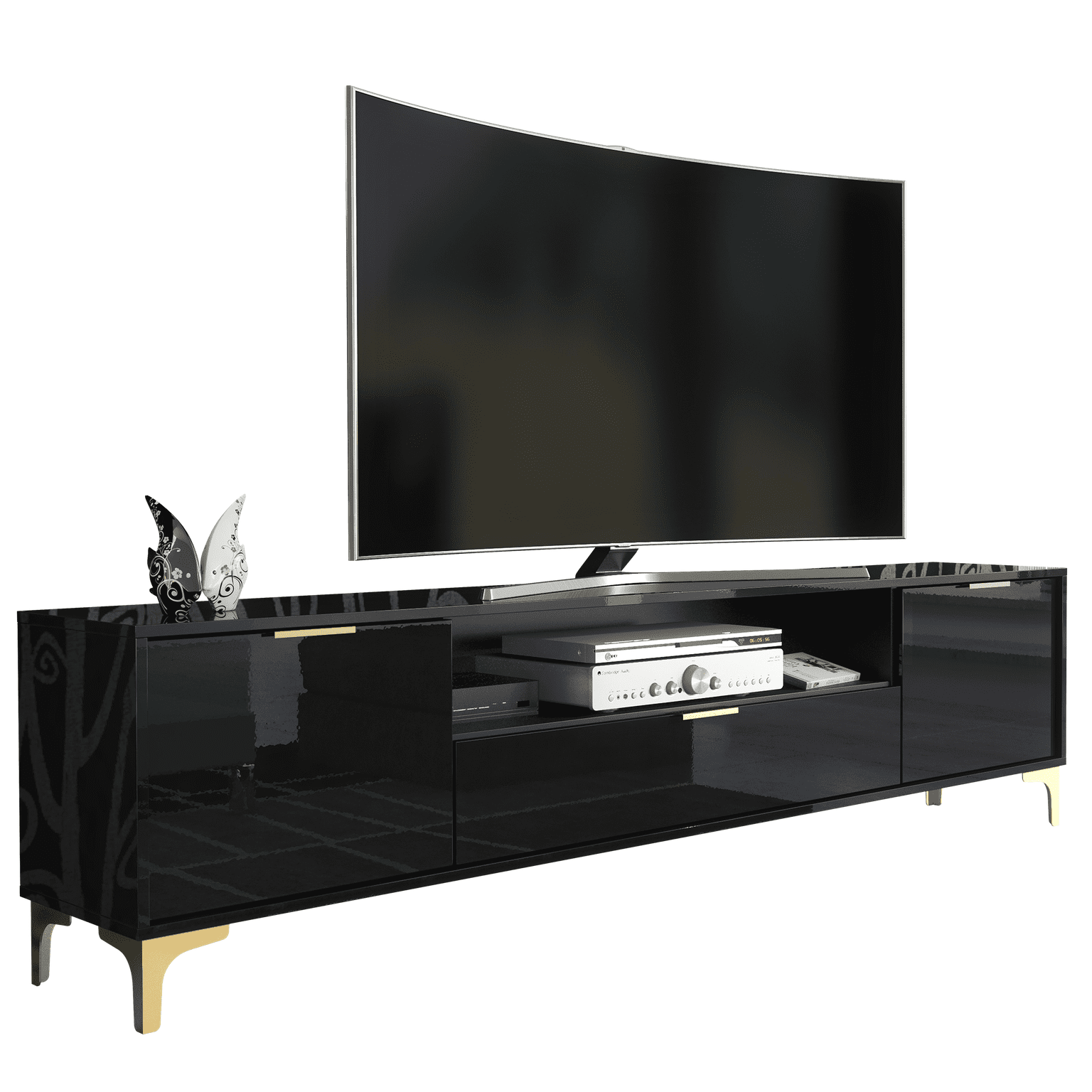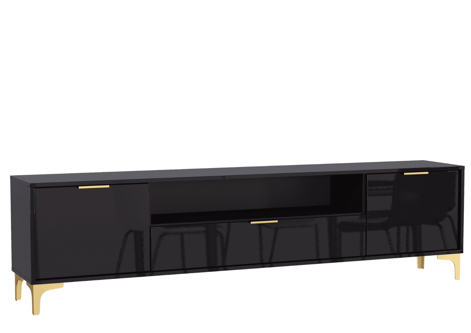 Luxury High Gloss TV Unit Stand Cabinet with Gold Accents 200cm - Black