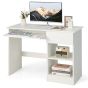 LYLURA Modern Wooden Office Computer Desk with Keyboard Tray-White